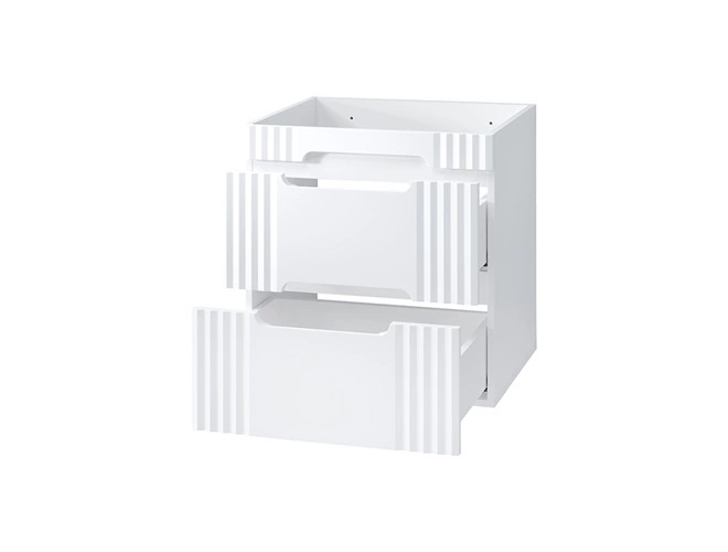Szafka pod umywalkę Fiji White 60 cm biała nowoczesny design szafki z szufladami stylowe ryflowanie na frontach frezowane uchwyty