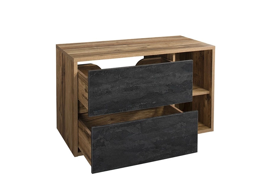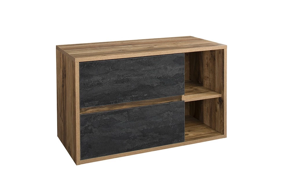 Szafka pod umywalkę nablatową Hampton 100 cm dąb huton / ciemny beton stylowa szafka z szufladami prosta forma wyrazista kolorystyka