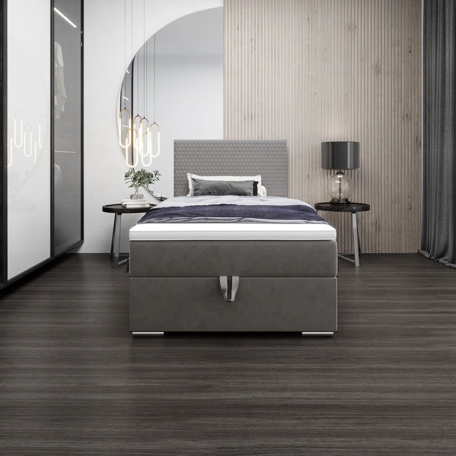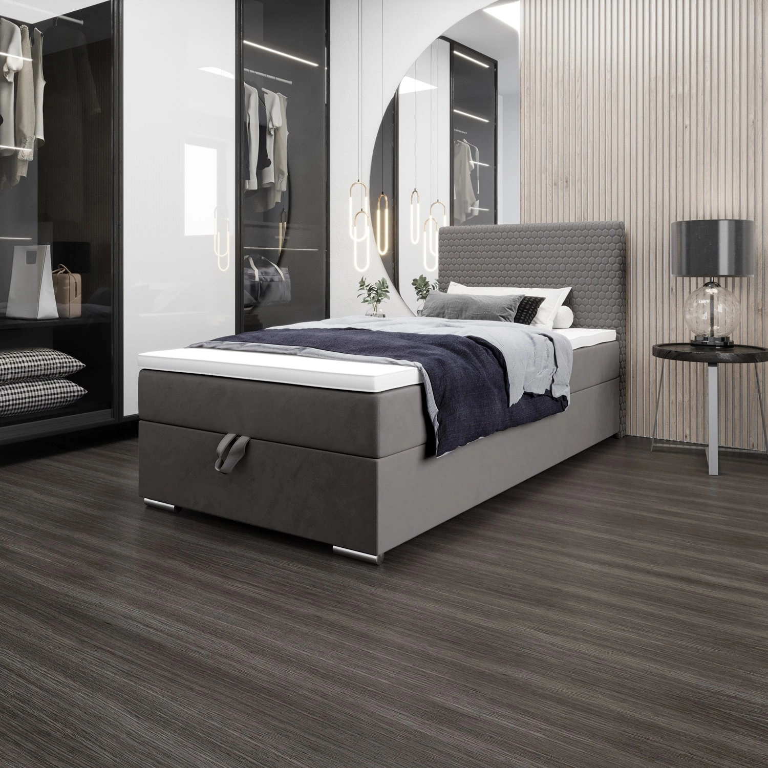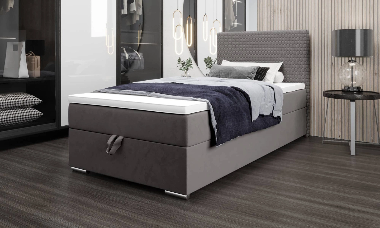 Łóżko kontynentalne Fargo 100x200 w kolorze szarym to idealny wybór do każdej sypialni lub pokoju młodzieżowego.