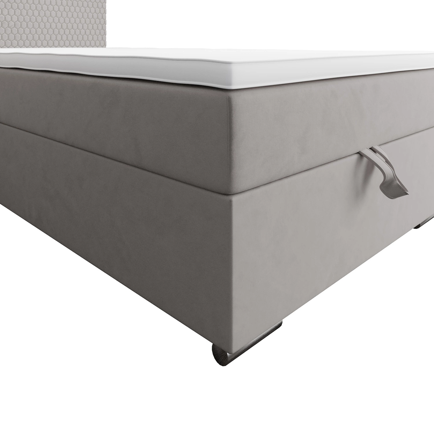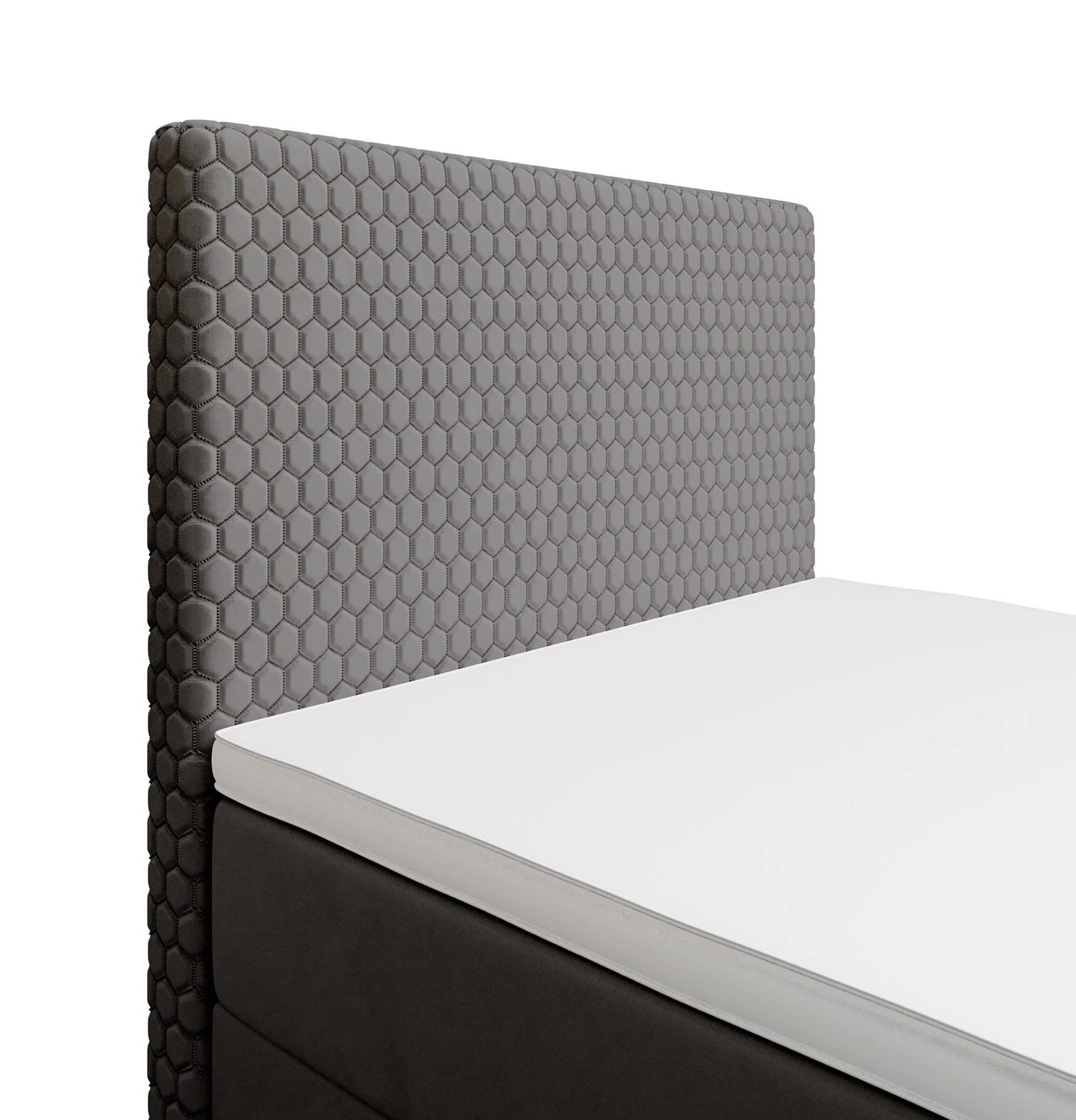 Łóżko wykonane z tkaniny Riviera 91 gwarantuje najwyższy komfort i funkcjonalność podczas codziennego wypoczynku w sypialni. Tkanina ta jest bardzo miękka i przyjemna w dotyku. Zastosowana tkanina charakteryzuje się wysoką odpornością na ścieranie i tarcie oraz jest odporna na działanie światła. Dzięki wszystkim właściwościom użytej tkaniny, łóżko kontynentalne na długo zachowa swój pierwotny wygląd. Konstrukcja łóżka zapewnia dużą stabilność i wygodę użytkowania. Rama łóżka kontynentalnego jest wykonana z drewna oraz płyty meblowej. Ciekawy wzór na zagłówku, imitujący plaster miodu przyciąga wzrok i nadaje łóżku szczególnego charakteru.