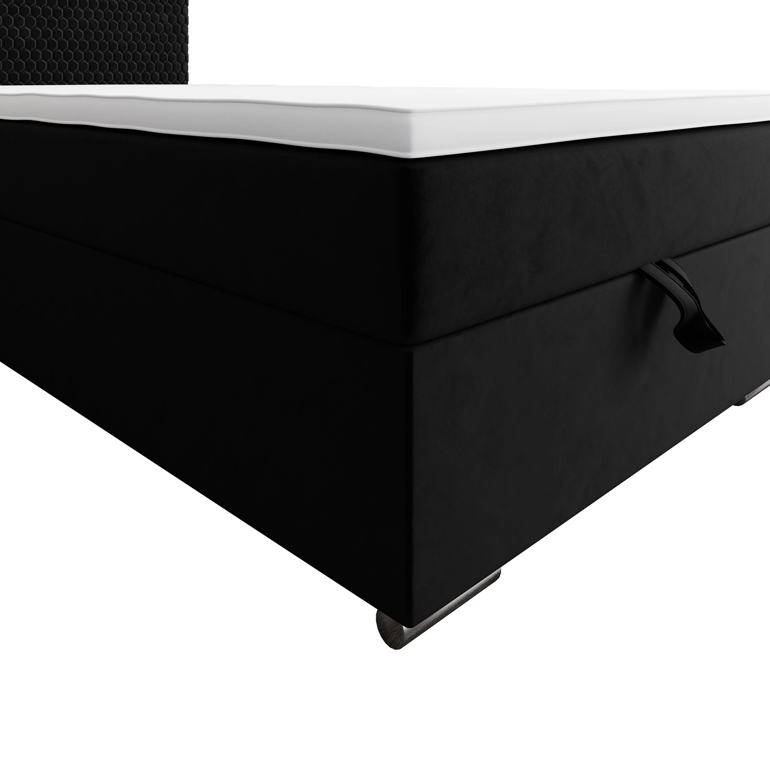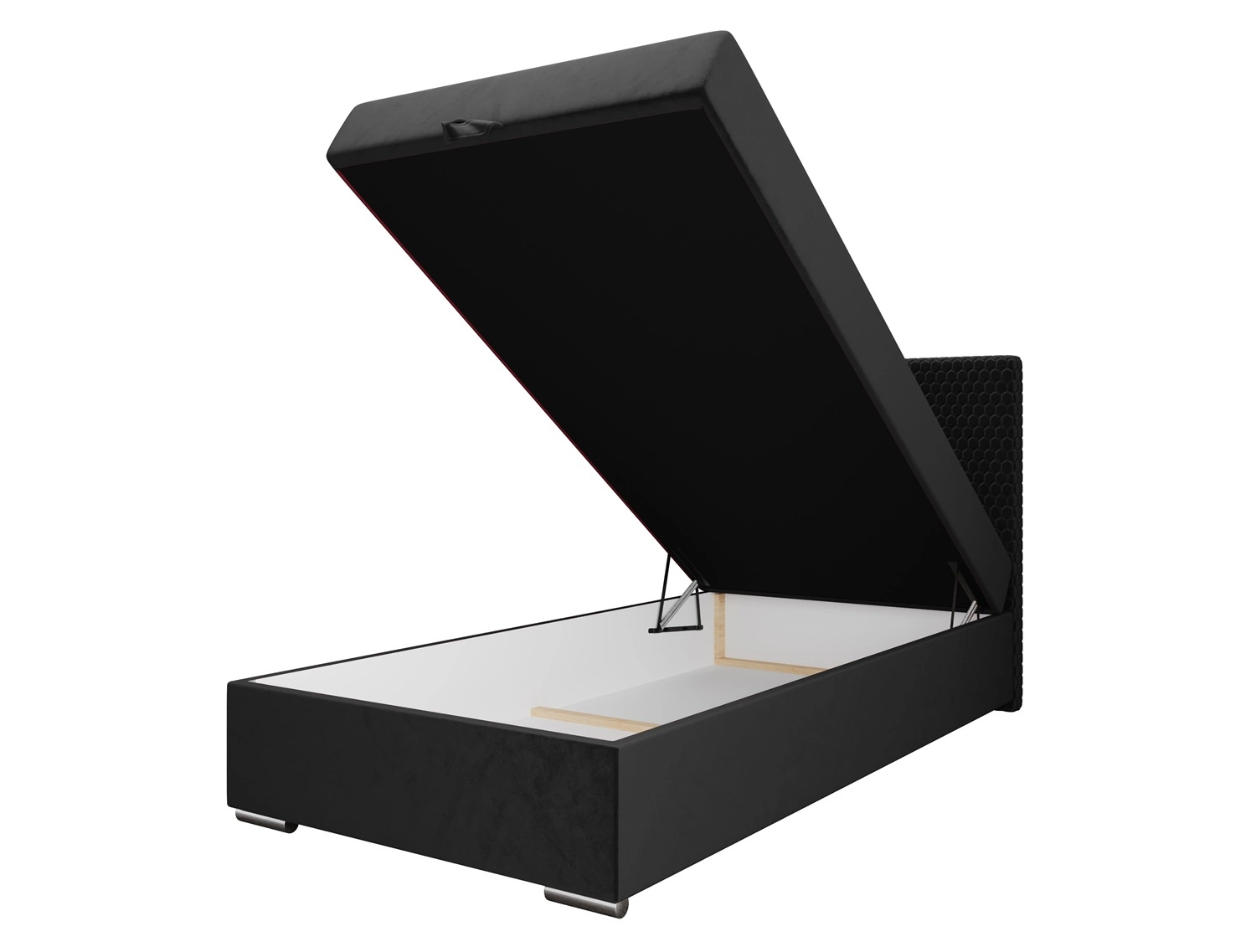 Dla większej funkcjonalności łóżko kontynentalne jest wyposażone w duży pojemnik, który umożliwia wygodne przechowywanie niezbędnych akcesoriów. Dostęp do pojemnika łóżka jest możliwy po podniesieniu materaca z przodu. Niezawodne automaty wspomagające podnoszenie ułatwią tę czynność.