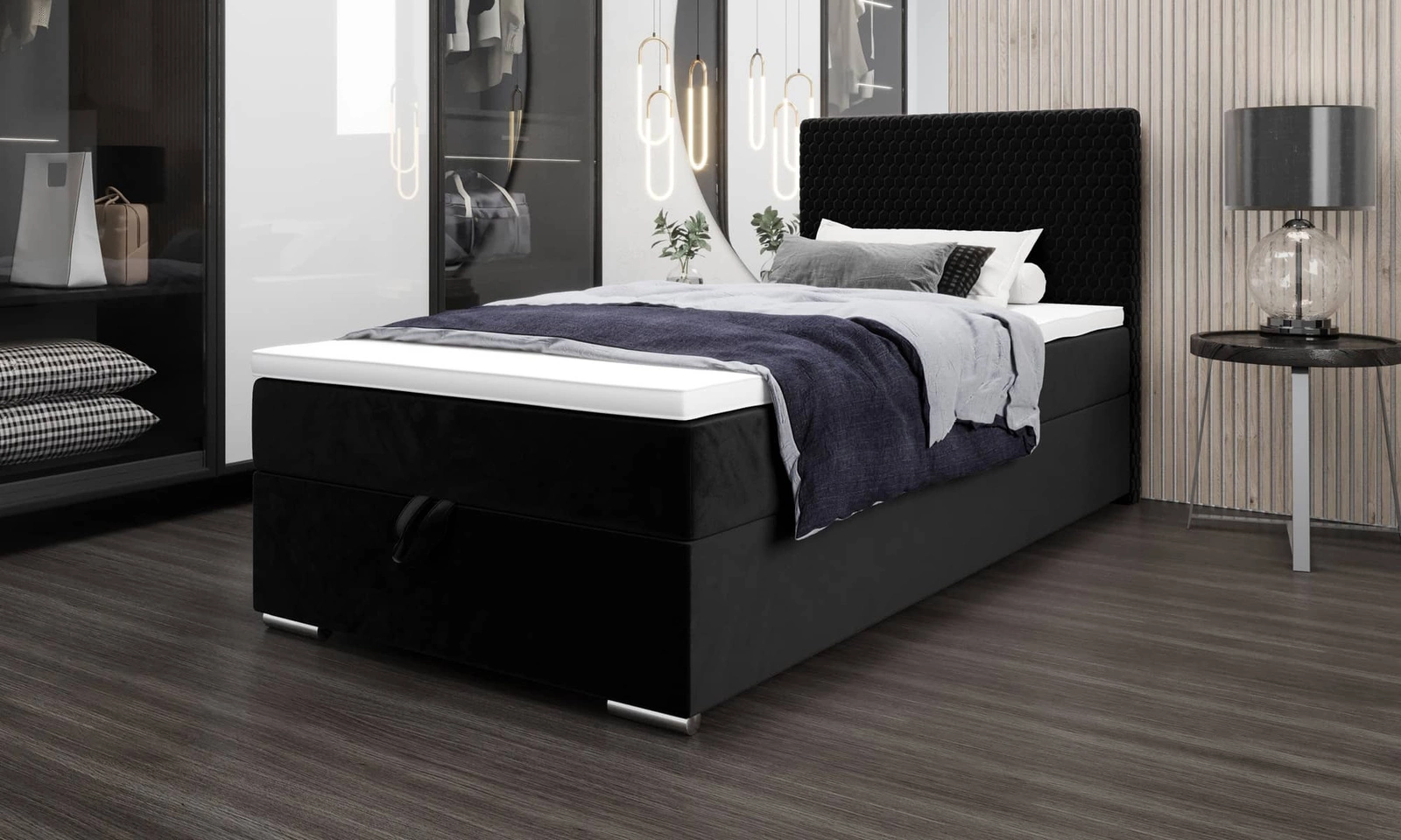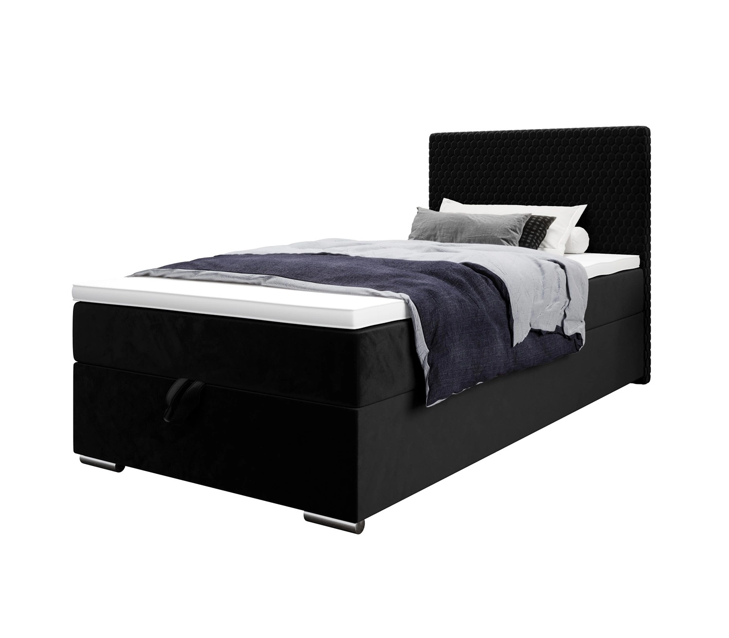 Łóżko kontynentalne Fargo 100x200 w kolorze czarnym to idealny wybór do każdej sypialni lub pokoju młodzieżowego.