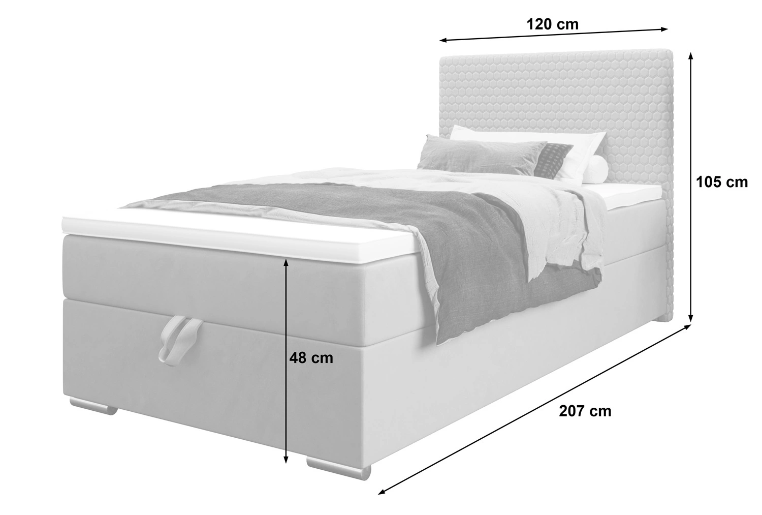 Łóżko wykonane z tkaniny Riviera 100 gwarantuje najwyższy komfort i funkcjonalność podczas codziennego wypoczynku w sypialni. Tkanina ta jest bardzo miękka i przyjemna w dotyku. Zastosowana tkanina charakteryzuje się wysoką odpornością na ścieranie i tarcie oraz jest odporna na działanie światła. Dzięki wszystkim właściwościom użytej tkaniny, łóżko kontynentalne na długo zachowa swój pierwotny wygląd. Konstrukcja łóżka zapewnia dużą stabilność i wygodę użytkowania. Rama łóżka kontynentalnego jest wykonana z drewna oraz płyty meblowej. Ciekawy wzór na zagłówku, imitujący plaster miodu przyciąga wzrok i nadaje łóżku szczególnego charakteru.