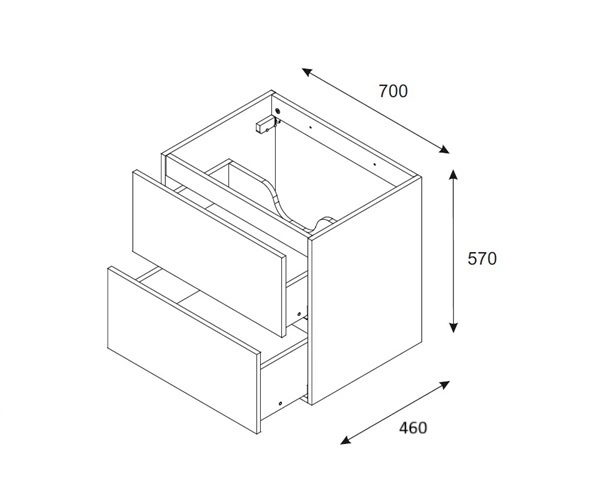 Szafka łazienkowa jest wyposażona w dwie szuflady. Komfort użytkowania podnoszą zastosowane w szufladach prowadnice z funkcją cichego domykania, dzięki którym szuflady zamykają się cicho i łagodnie. W celu łatwiejszego montażu odpływu, górna szuflada ma wcięcie. Wszystkie elementy kolekcji Luxor wyróżniają się starannym wykonaniem i dbałością o detale, gwarantując estetyczny wygląd i długotrwałą satysfakcję z użytkowania.