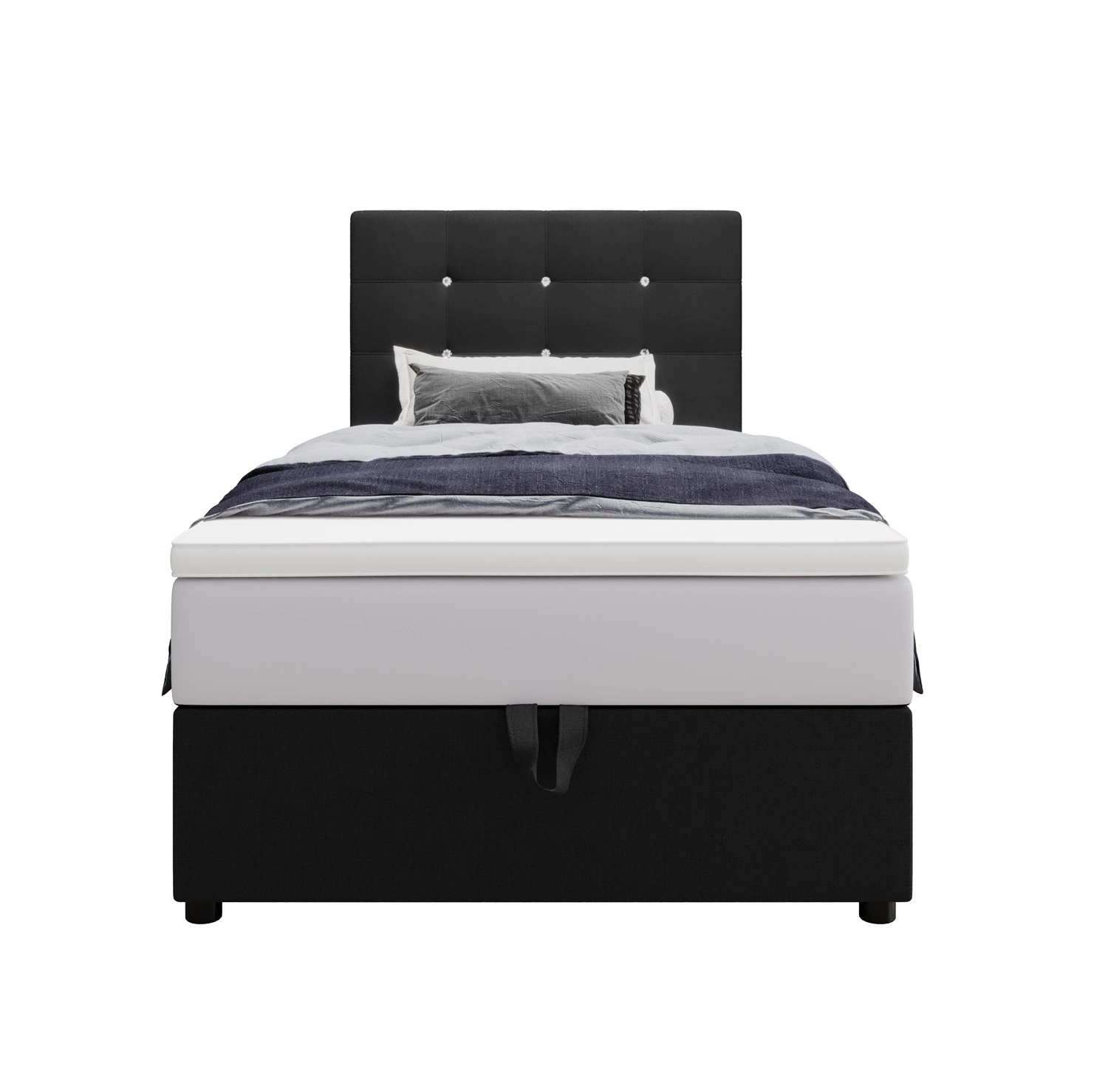 Łóżko kontynentalne Kingston 100x200 czarne w nowoczesnym skandynawskim stylu z tapicerowanym zagłówkiem z kryształkami łóżko z pojemnikiem