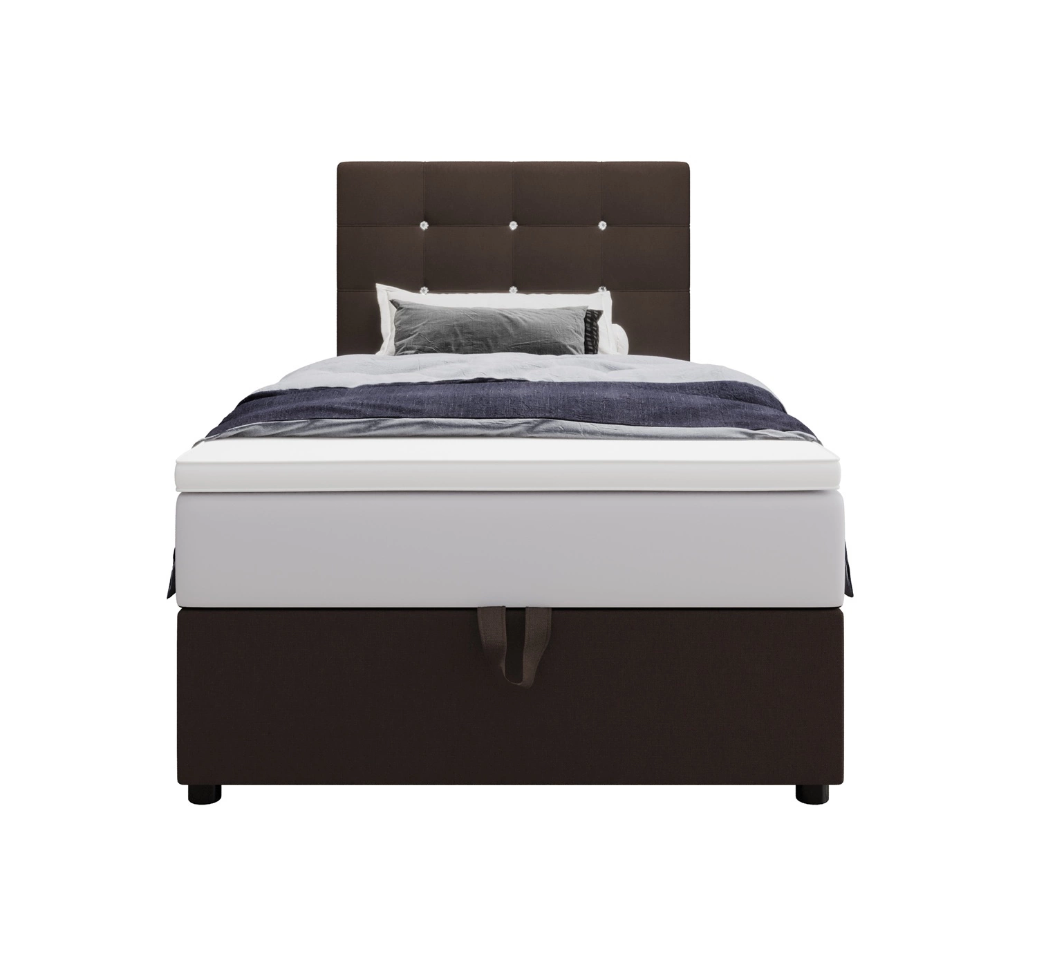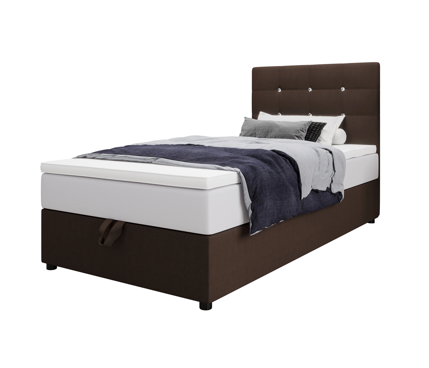 Łóżko kontynentalne Kingston 100x200 brązowe w nowoczesnym skandynawskim stylu z tapicerowanym zagłówkiem z kryształkami łóżko z pojemnikiem
