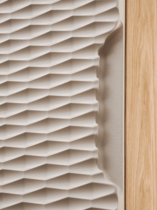 Szafka łazienkowa wisząca Ocean 35 cm dąb olejowany / beżowy designerska szafka z oryginalnym ryflowaniem w kształcie poziomych fal