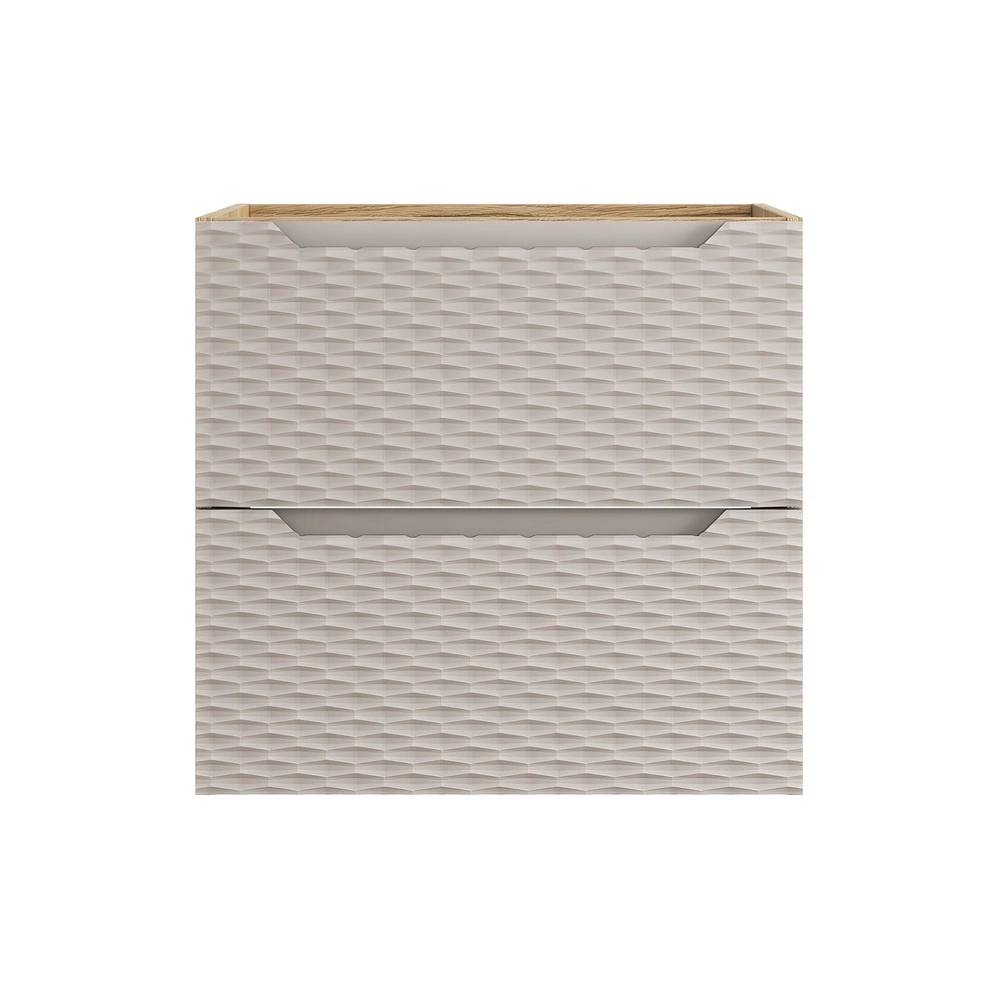 Szafka pod umywalkę Ocean 70 cm dąb olejowany / beżowy designerska szafka z szufladami ryflowania w kształcie fal frezowane uchwyty