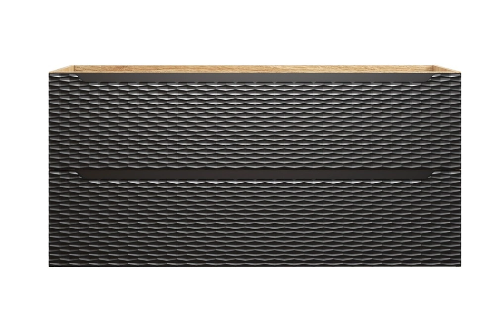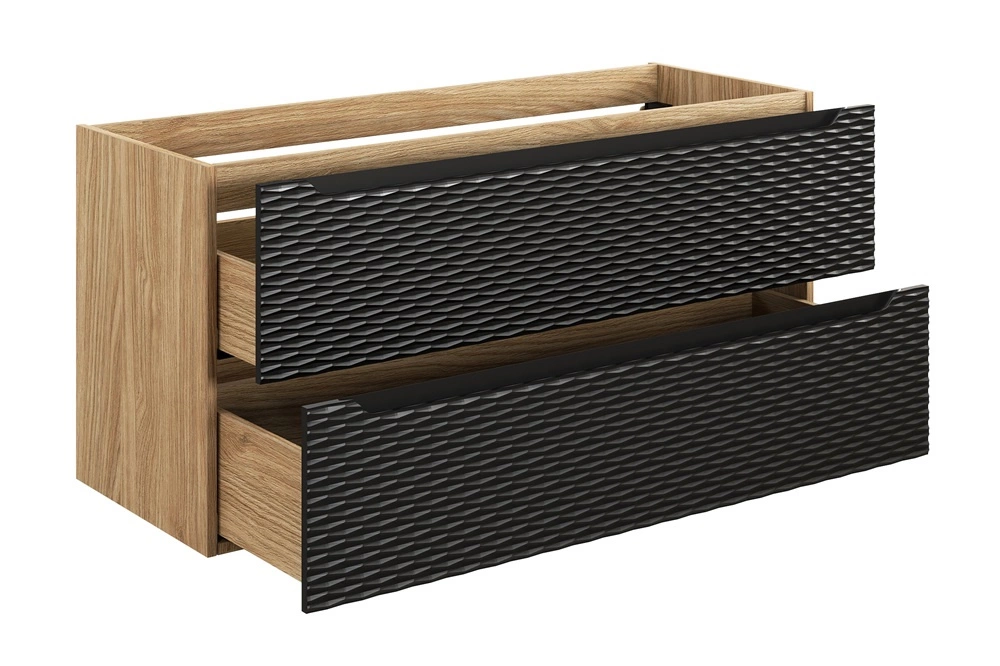 Szafka pod umywalkę Ocean 120 cm dąb olejowany / czarny funkcjonalna szafka z frezowanymi uchwytami stylowe ryflowania w kształcie fal