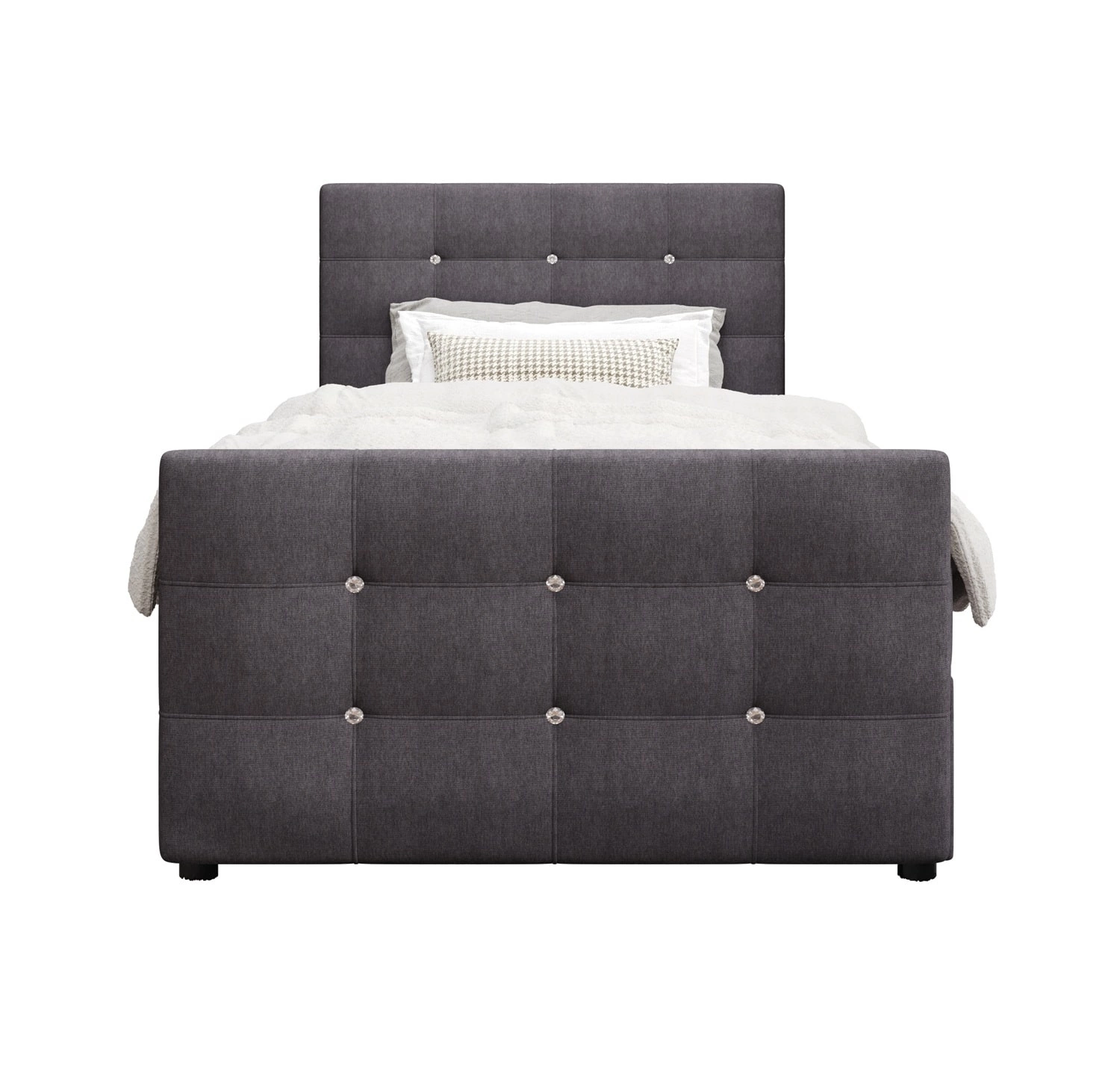 Łóżko kontynentalne Kansas 120x200 w kolorze grafitowym to idealny wybór do każdej sypialni lub pokoju młodzieżowego.