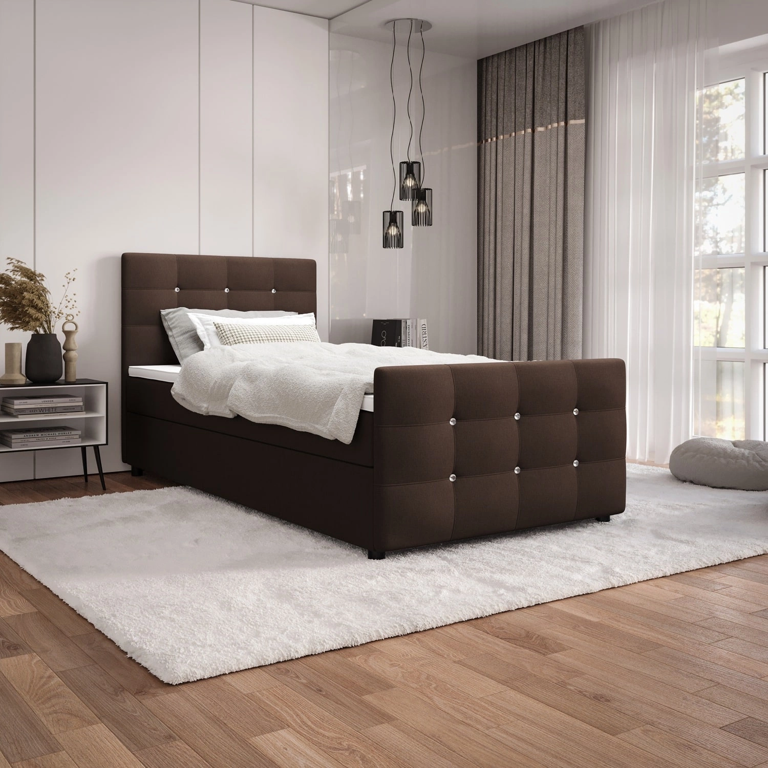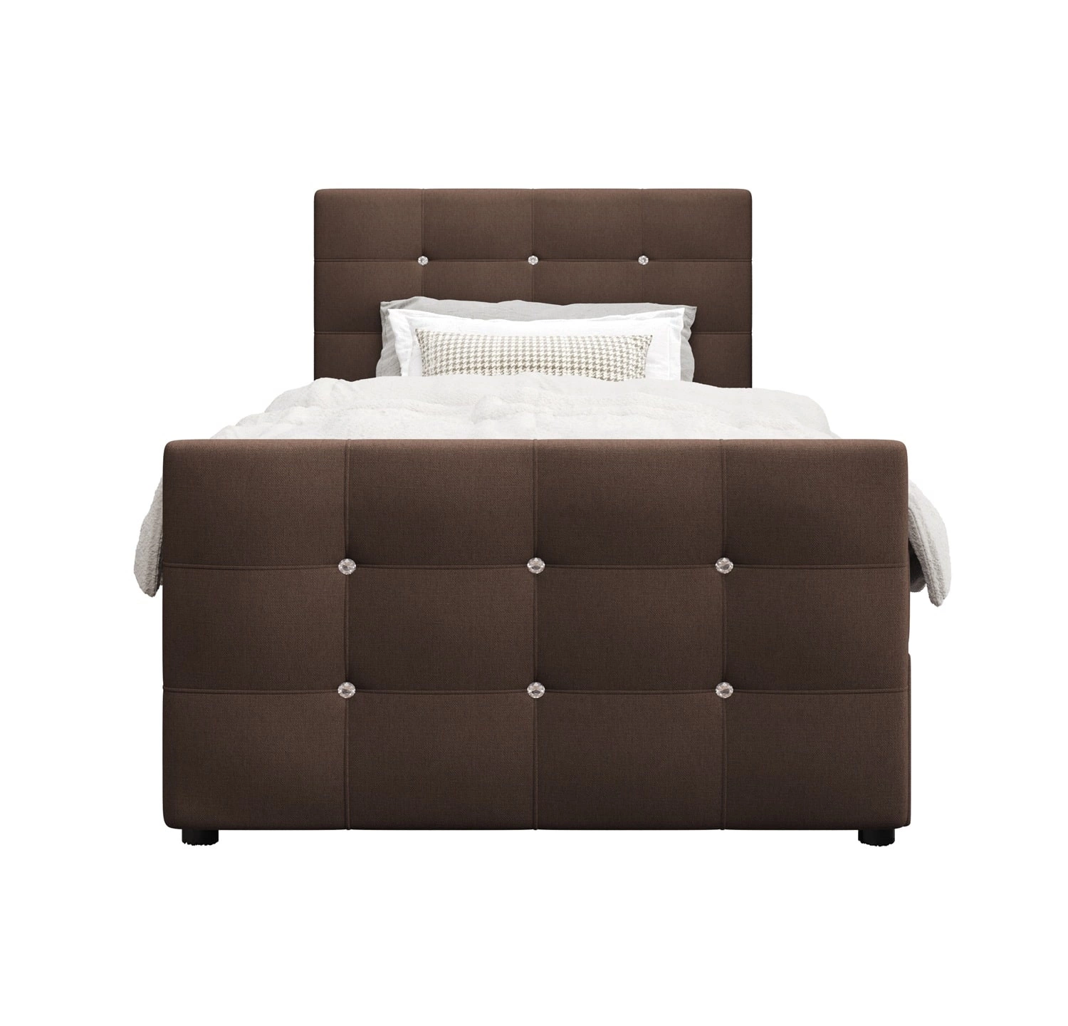 Łóżko kontynentalne Kansas 120x200 w kolorze brązowym to idealny wybór do każdej sypialni lub pokoju młodzieżowego.