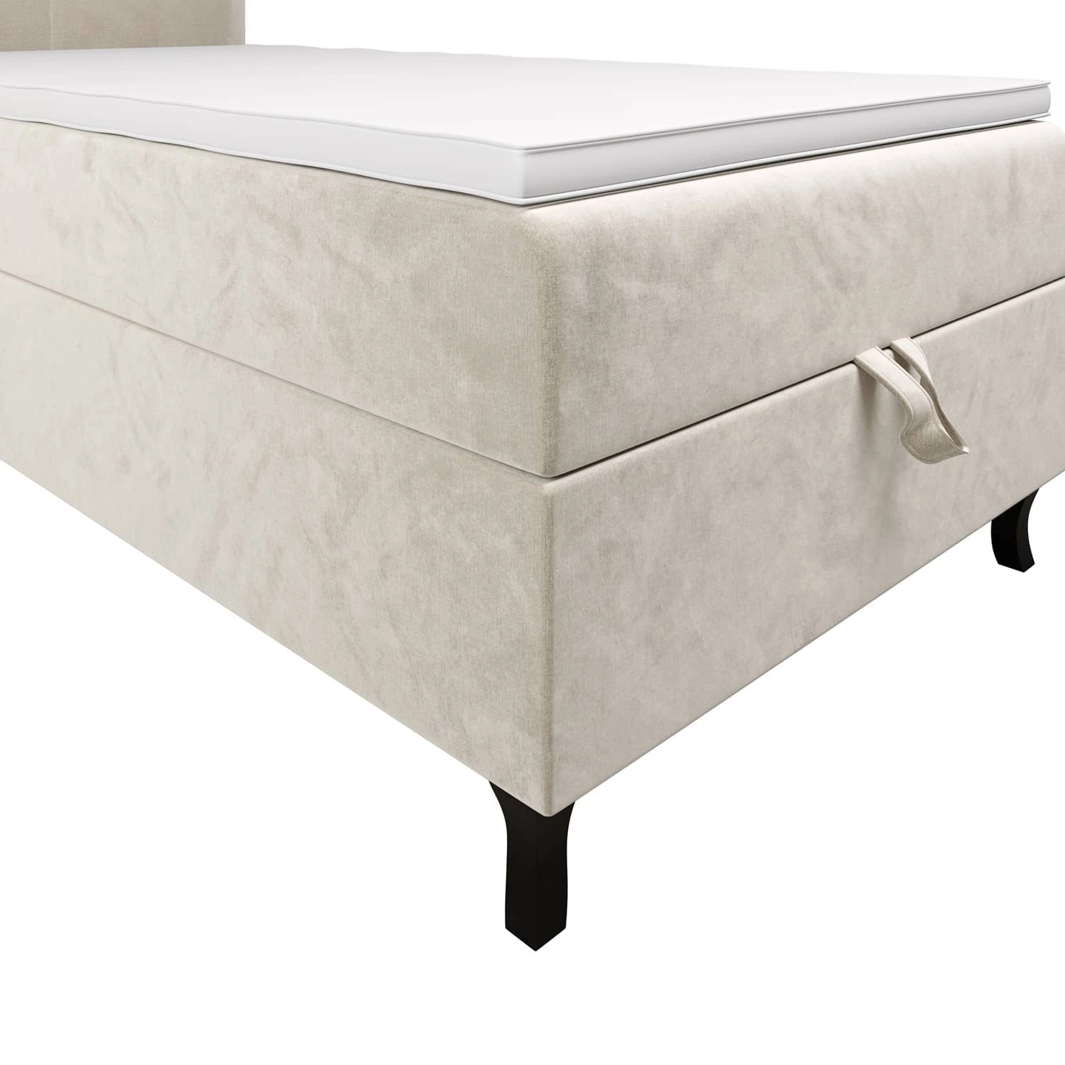 Łóżko wykonane z tkaniny typu velvet Monolith 02 gwarantuje najwyższy komfort i funkcjonalność podczas codziennego wypoczynku w sypialni. Tkanina posiada powłokę hydrofobową, co gwarantuje ograniczone wchłanianie cieczy. Ciekawa struktura tkaniny nadaje wyjątkowego charakteru. Dzięki wszystkim właściwościom użytej tkaniny, łóżko kontynentalne na długo zachowa swój pierwotny wygląd. Konstrukcja łóżka zapewnia dużą stabilność i wygodę użytkowania. Rama łóżka kontynentalnego jest wykonana z drewna oraz płyty meblowej. Lekkie przeszycia na wezgłowiu przyciągają wzrok i nadają łóżku szczególnego charakteru. Łóżko wyposażone zostało w nogi drewniane.
