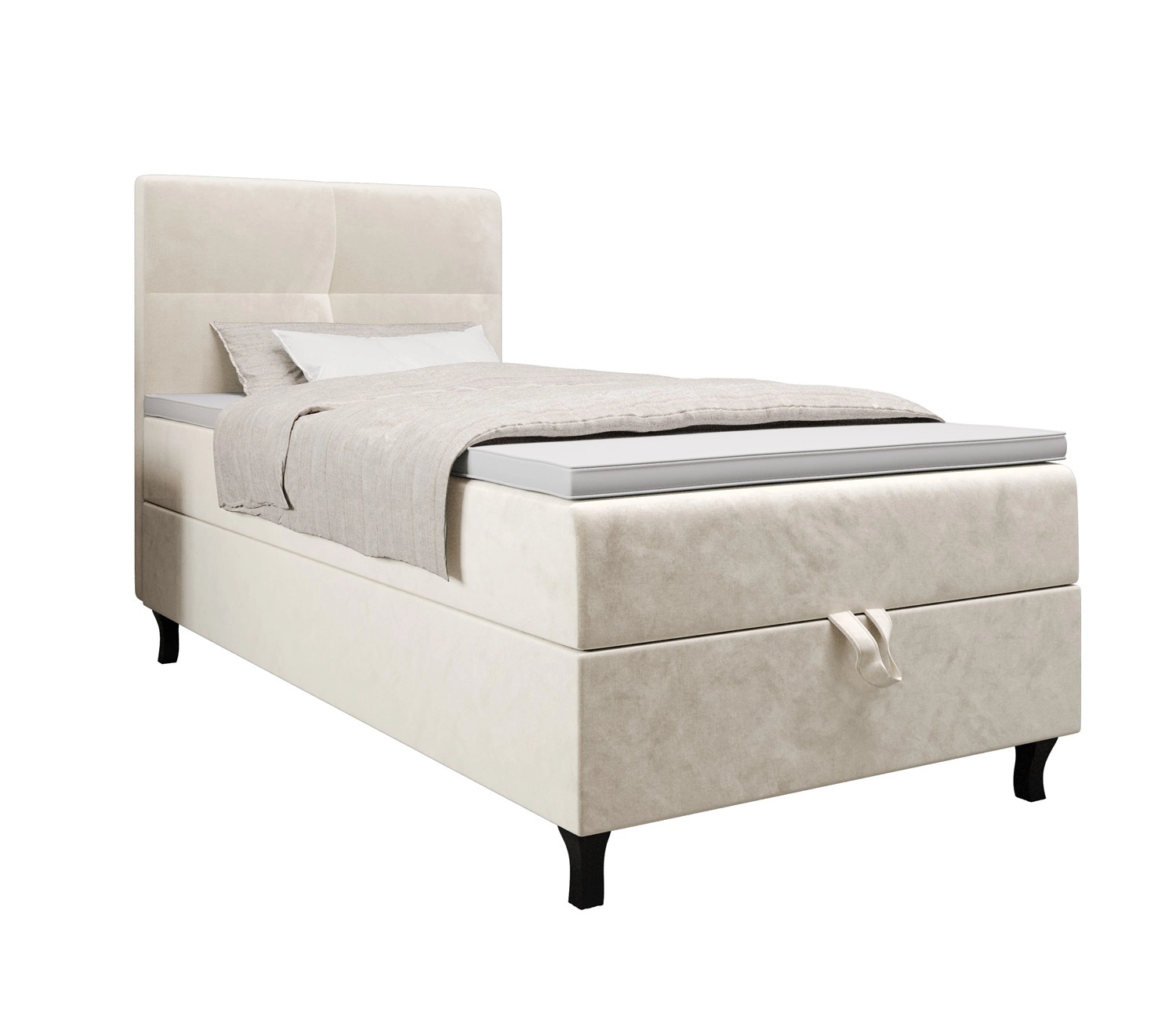 Łóżko kontynentalne Melba 100x200 beżowe w nowoczesnym skandynawskim stylu z tapicerowanym zagłówkiem łóżko z pojemnikiem