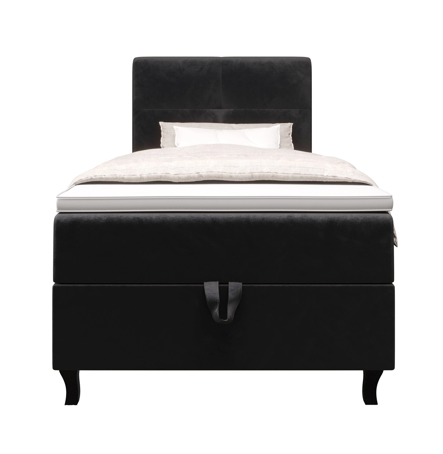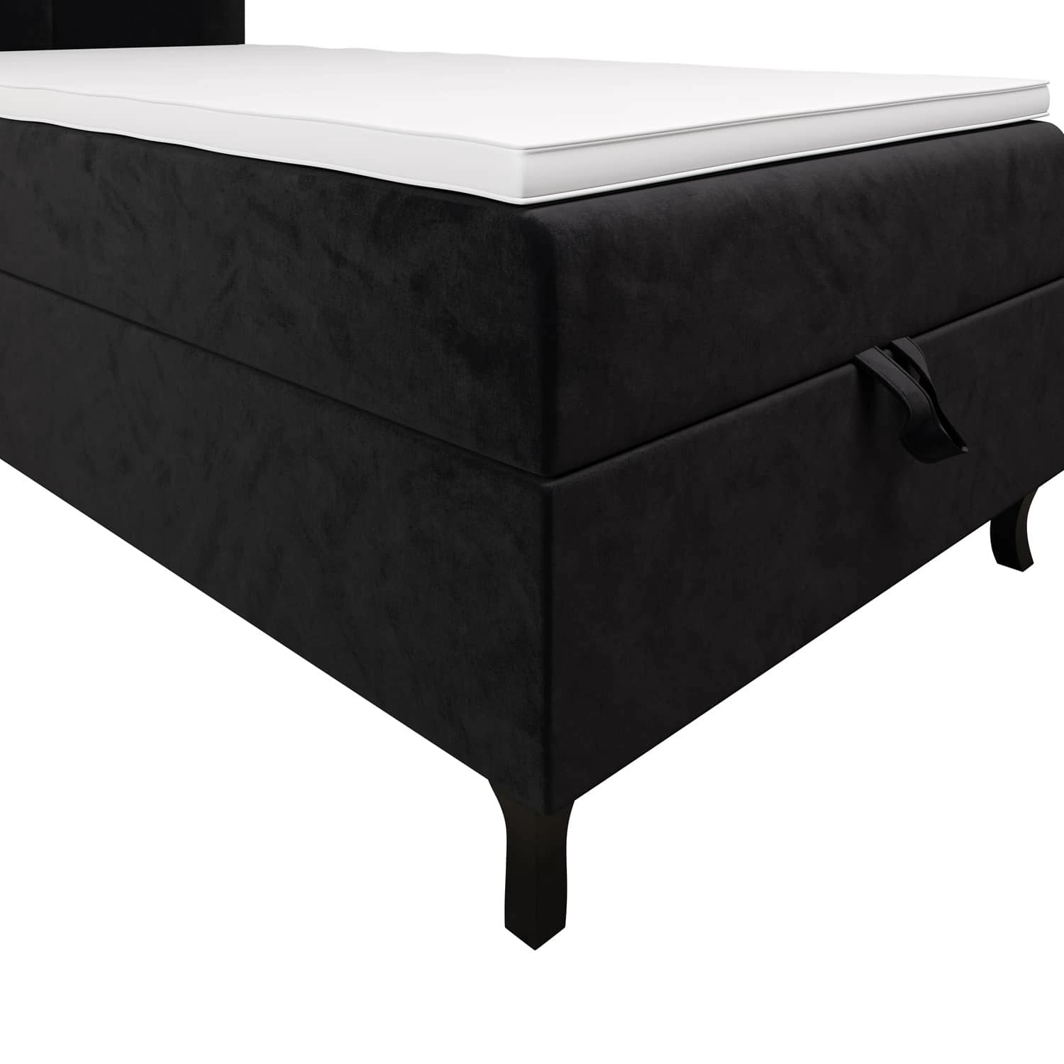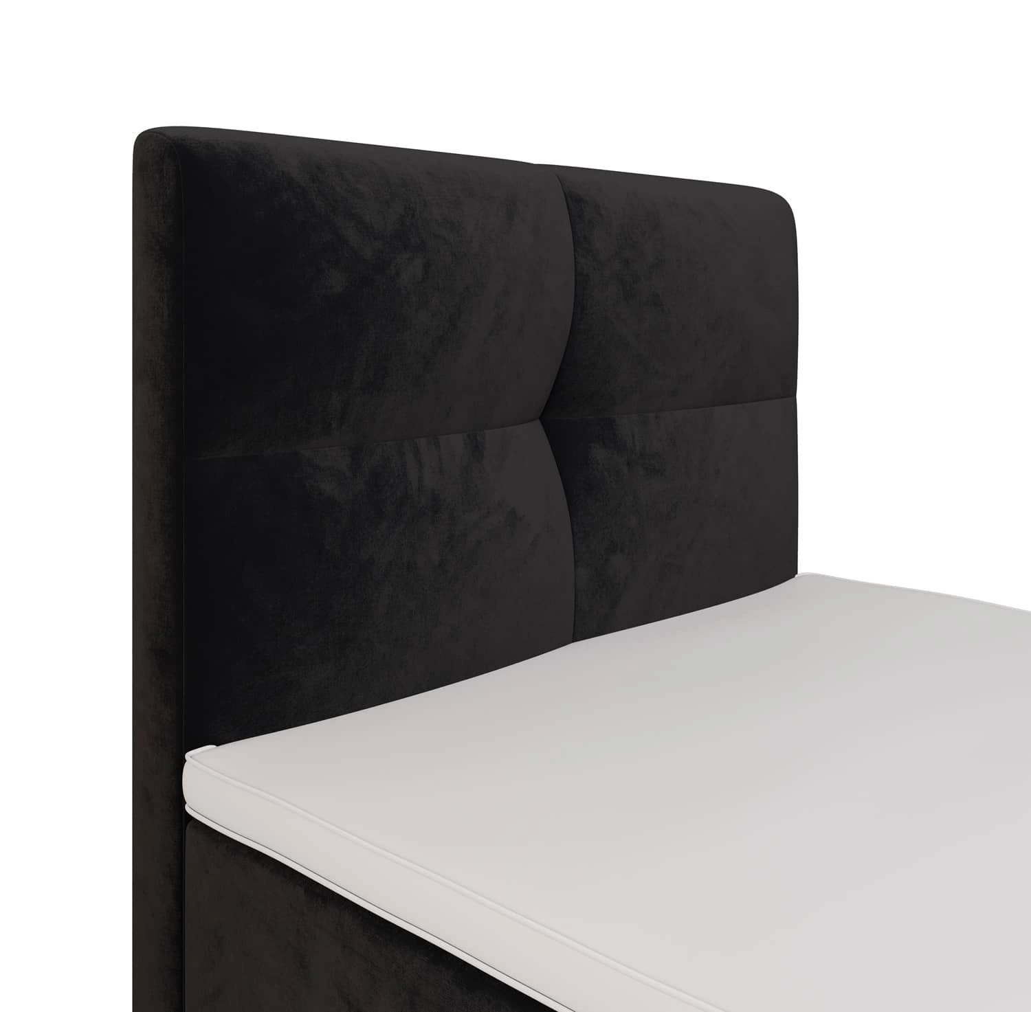 Łóżko wykonane z tkaniny typu velvet Monolith 97 gwarantuje najwyższy komfort i funkcjonalność podczas codziennego wypoczynku w sypialni. Tkanina posiada powłokę hydrofobową, co gwarantuje ograniczone wchłanianie cieczy. Ciekawa struktura tkaniny nadaje wyjątkowego charakteru. Dzięki wszystkim właściwościom użytej tkaniny, łóżko kontynentalne na długo zachowa swój pierwotny wygląd. Konstrukcja łóżka zapewnia dużą stabilność i wygodę użytkowania. Rama łóżka kontynentalnego jest wykonana z drewna oraz płyty meblowej. Lekkie przeszycia na wezgłowiu przyciągają wzrok i nadają łóżku szczególnego charakteru. Łóżko wyposażone zostało w nogi drewniane.