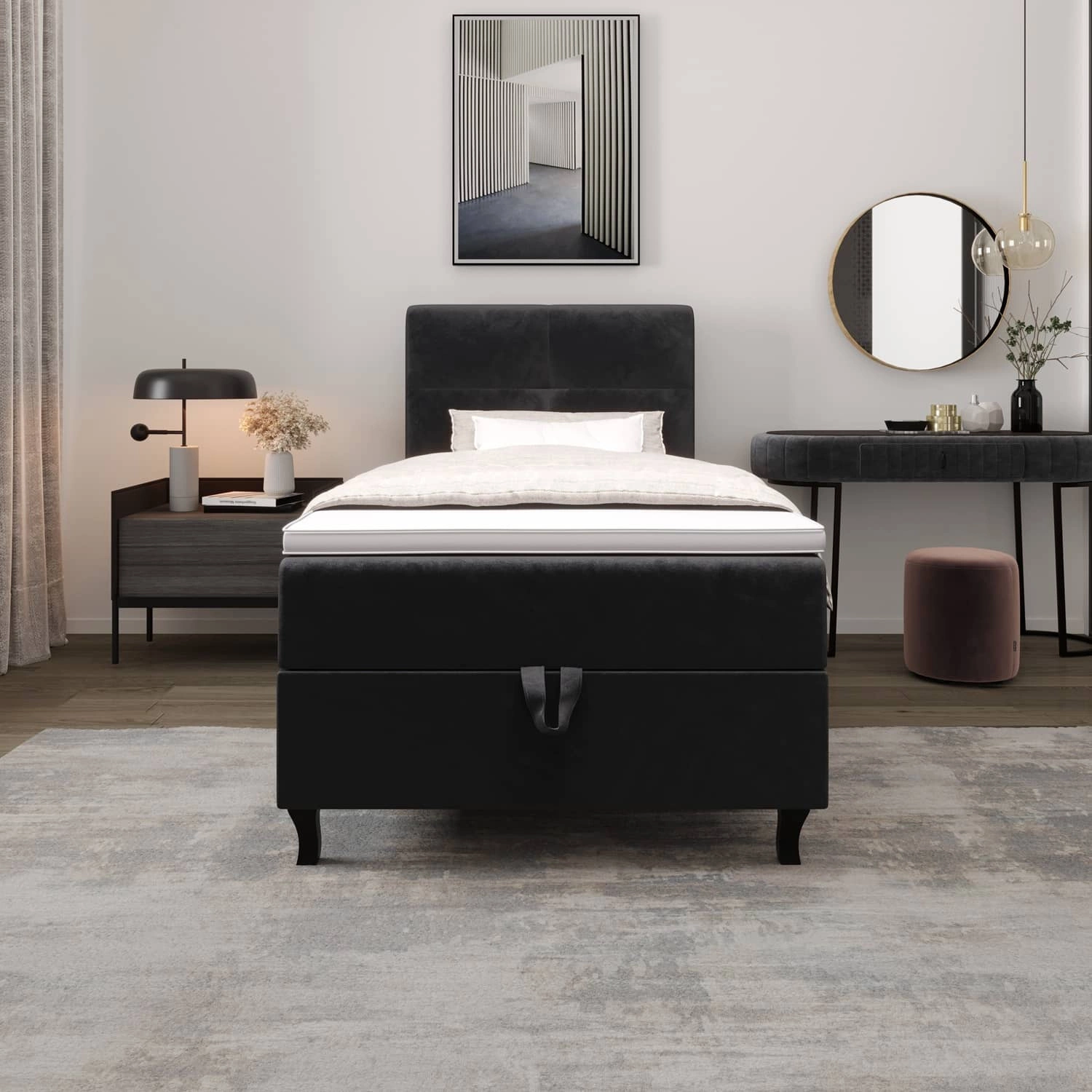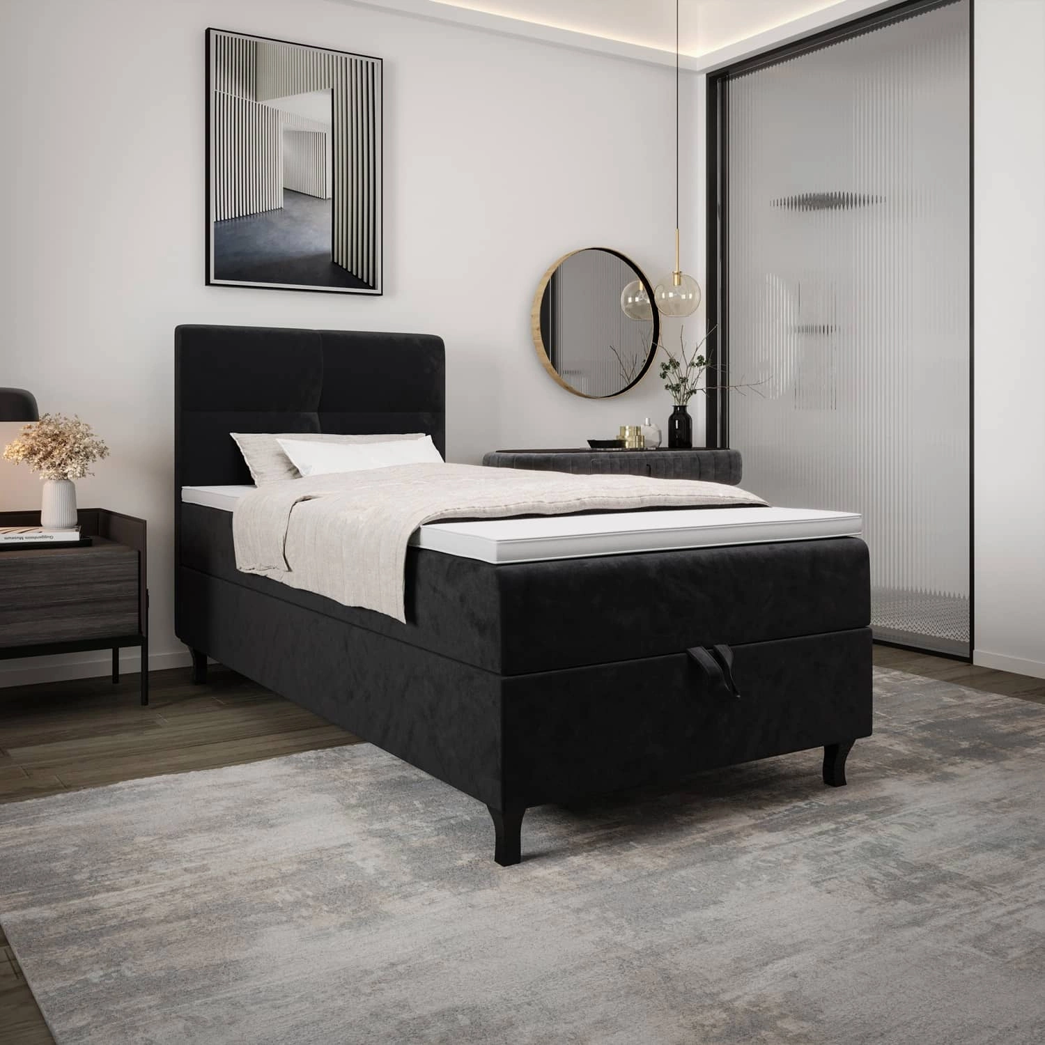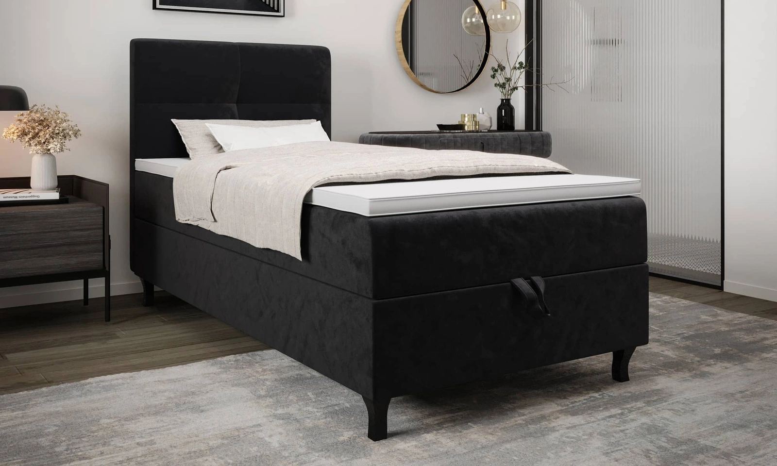 Łóżko kontynentalne Melba 90x200 grafitowe w nowoczesnym skandynawskim stylu z tapicerowanym zagłówkiem łóżko z pojemnikiem