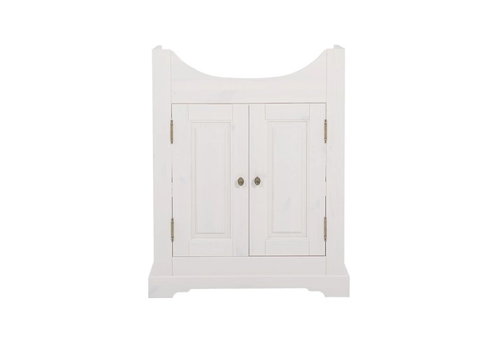 Zestaw mebli łazienkowych Romantic biały eleganckie drewniane szafki do łazienki w stylu klasycznym gustowne metalowe uchwyty