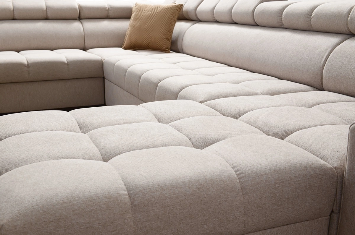 Szczegóły nowoczesnego narożnika z funkcją spania Bolmso VIII