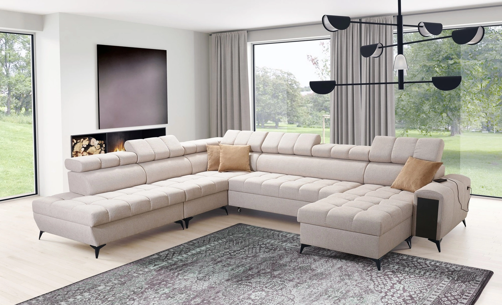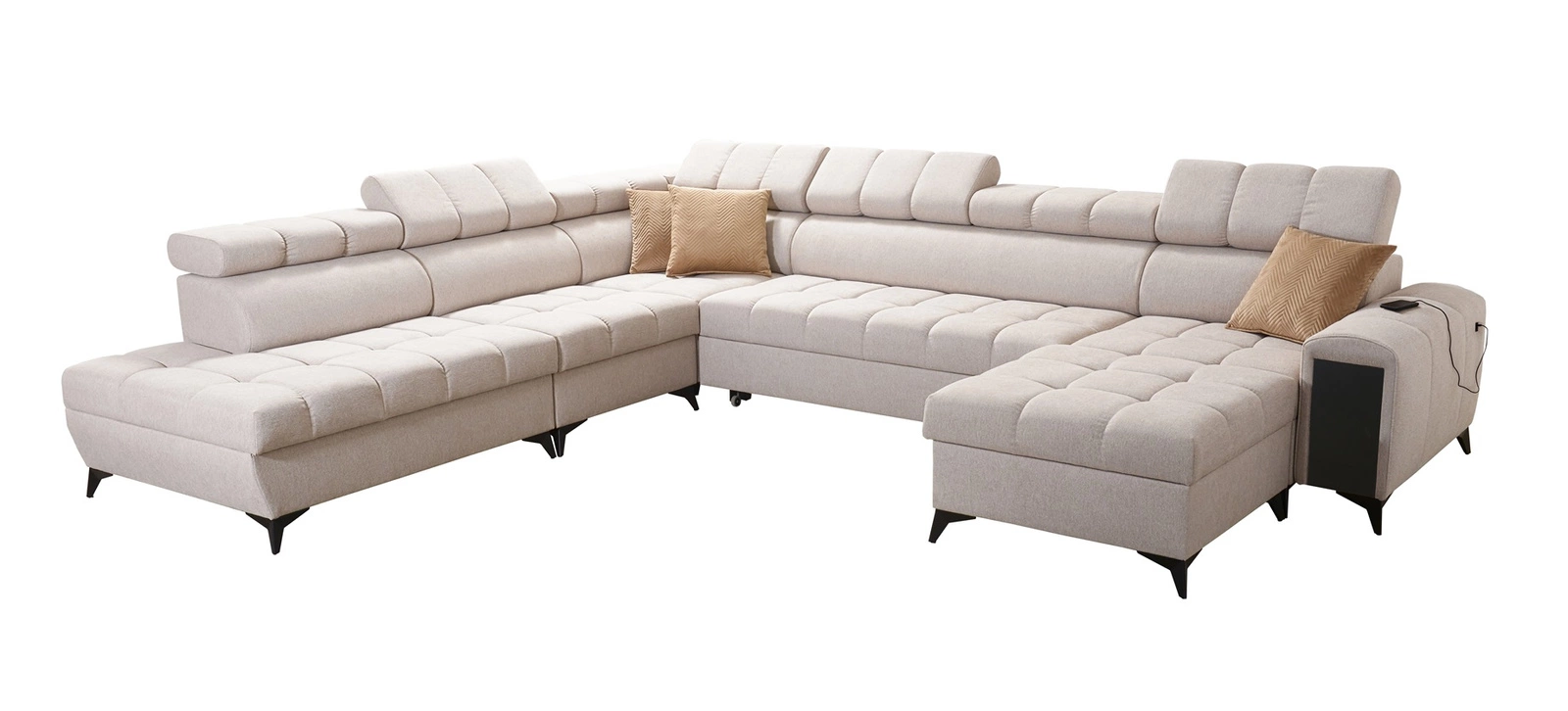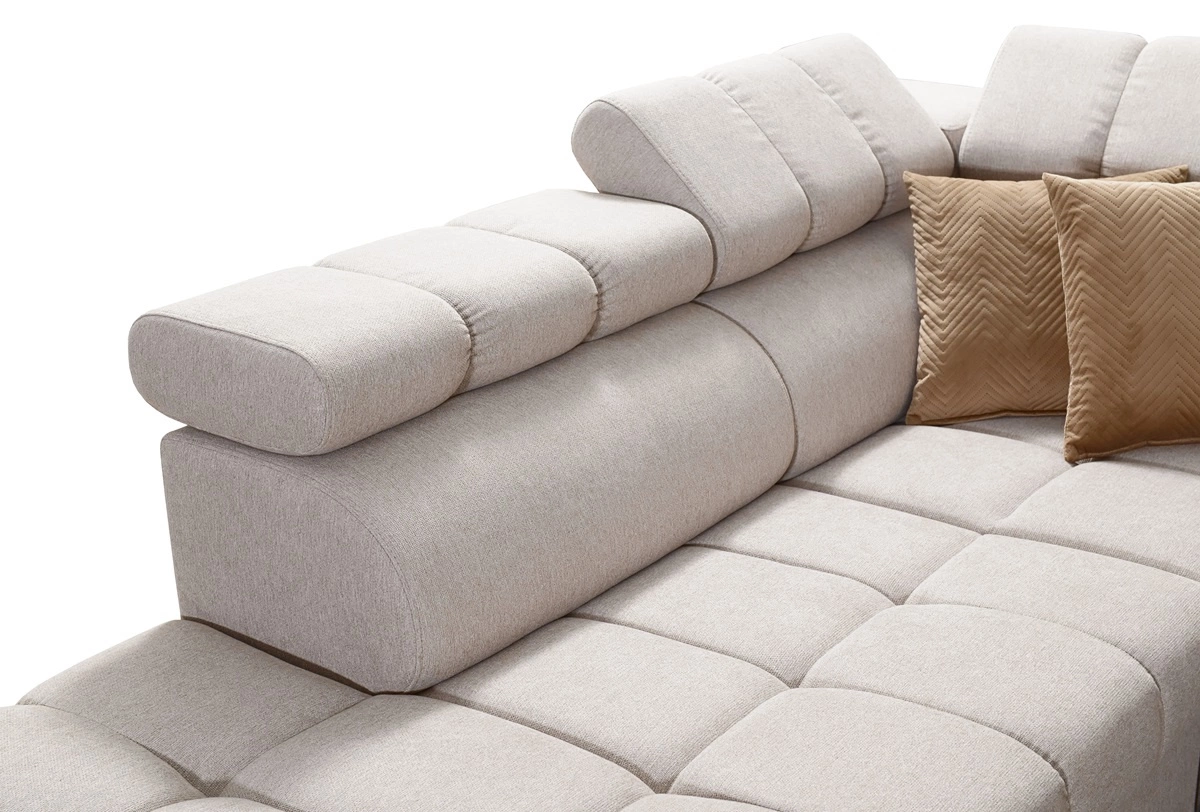 Narożnik Bolmso X w kolorze beżowym z regulowanymi zagłówkami to ciekawie prezentujący się mebel z gwarancją najwyższego komfortu i funkcjonalności.