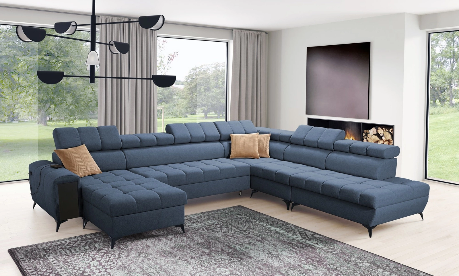 Narożnik Bolmso X w kolorze niebieskim z regulowanymi zagłówkami to ciekawie prezentujący się mebel z gwarancją najwyższego komfortu i funkcjonalności.