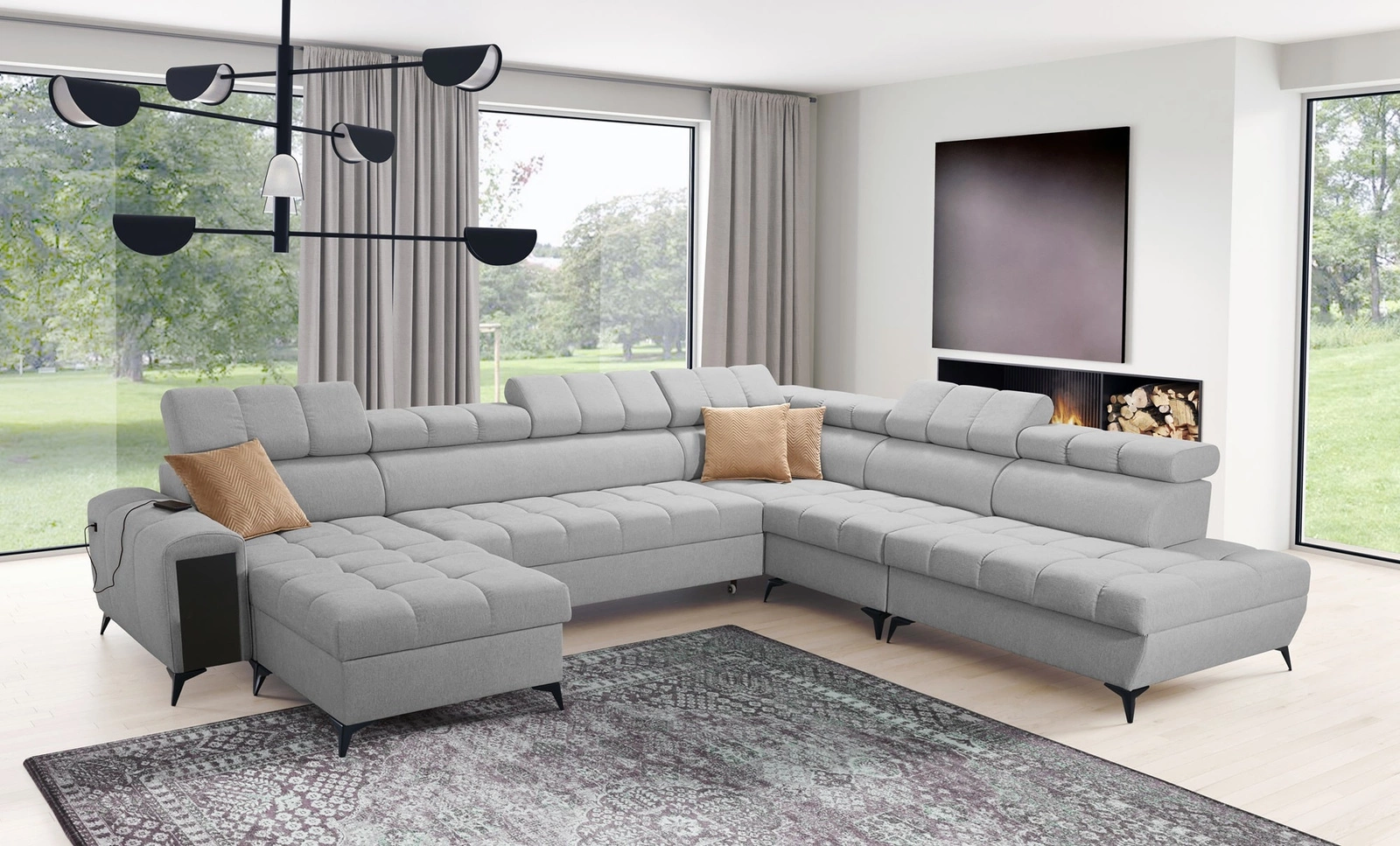Narożnik Bolmso X w kolorze szarym z regulowanymi zagłówkami to ciekawie prezentujący się mebel z gwarancją najwyższego komfortu i funkcjonalności.