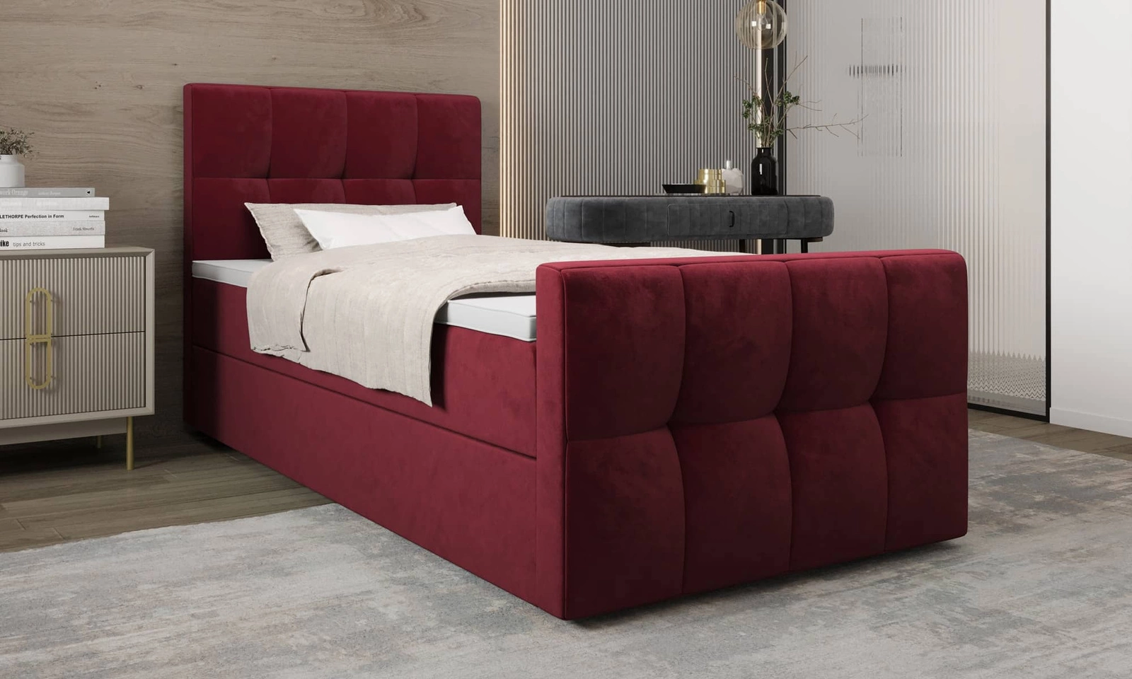 Łóżko kontynentalne Manhattan 100x200 w kolorze bordowym to idealny wybór do każdej sypialni lub pokoju młodzieżowego.