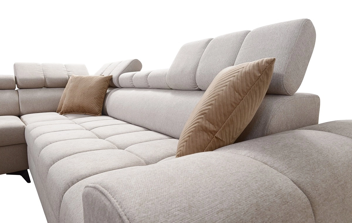 Narożnik Bolmso XII w kolorze szarym z regulowanymi zagłówkami to zachwycający mebel z gwarancją najwyższego komfortu i funkcjonalności.