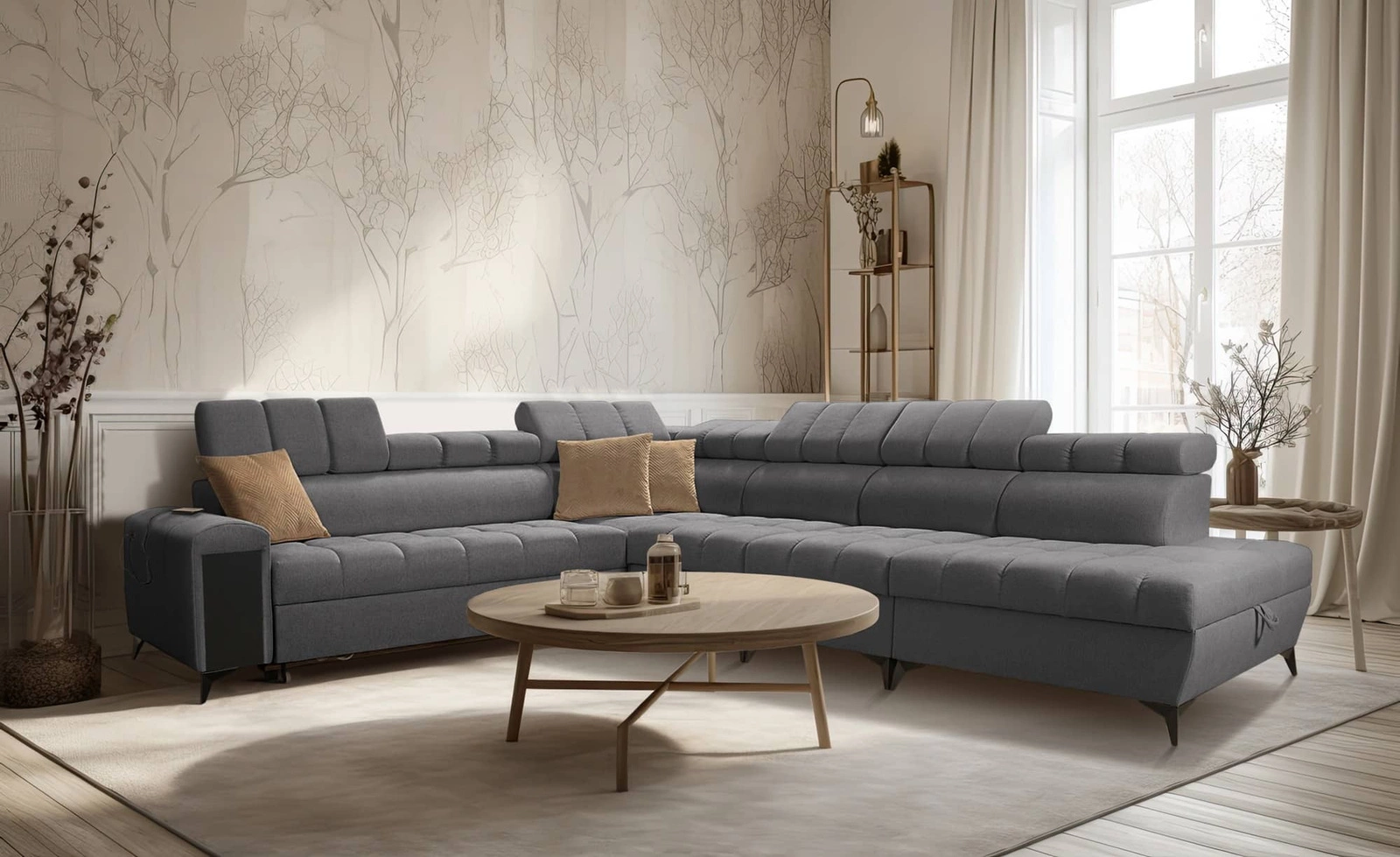 Narożnik Bolmso XII w kolorze grafitowym z regulowanymi zagłówkami to zachwycający mebel z gwarancją najwyższego komfortu i funkcjonalności.