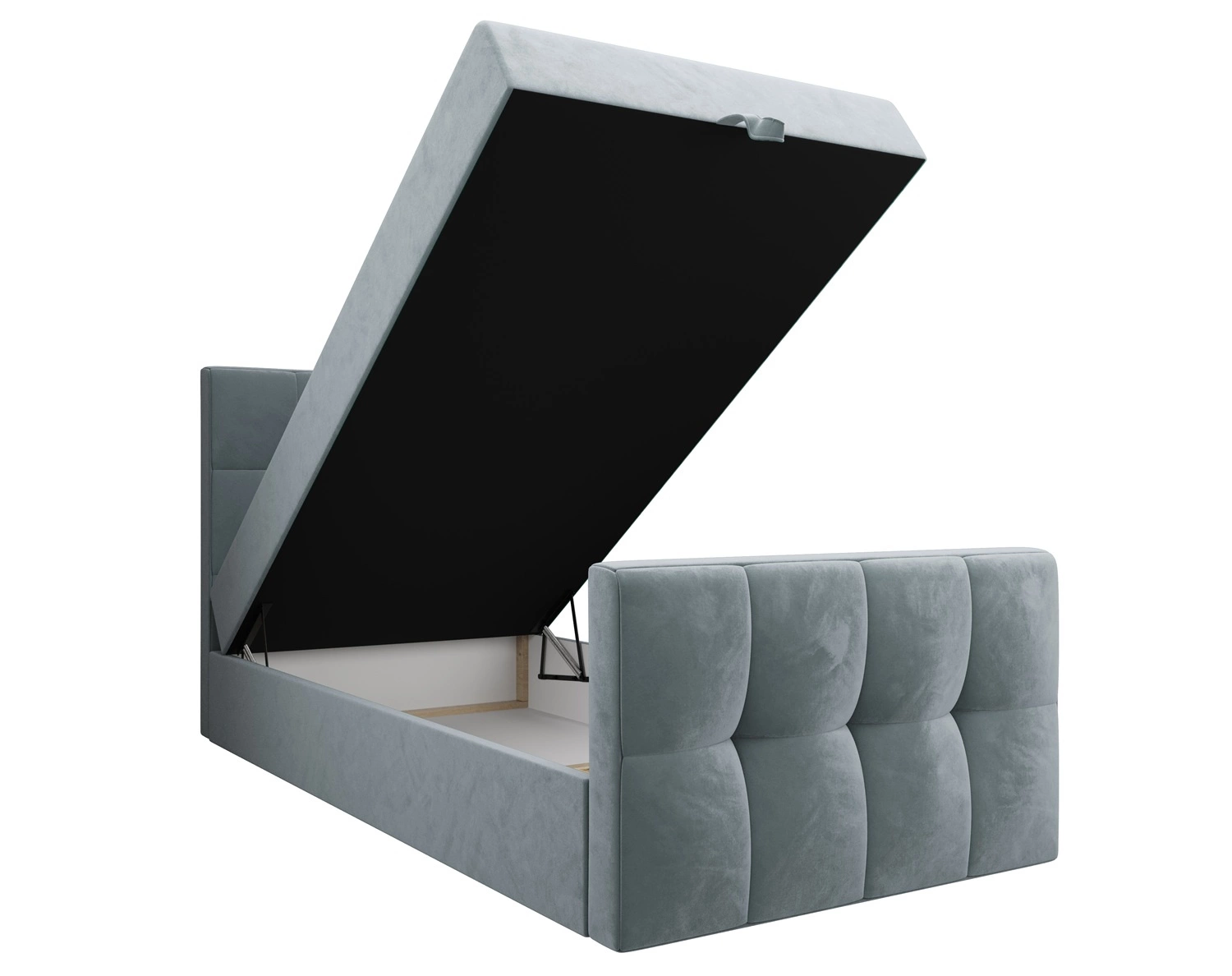 Dla większej funkcjonalności łóżko kontynentalne jest wyposażone w duży pojemnik, który umożliwia wygodne przechowywanie niezbędnych akcesoriów. Dostęp do pojemnika łóżka jest możliwy po podniesieniu materaca z przodu. Niezawodne automaty wspomagające podnoszenie ułatwią tę czynność.