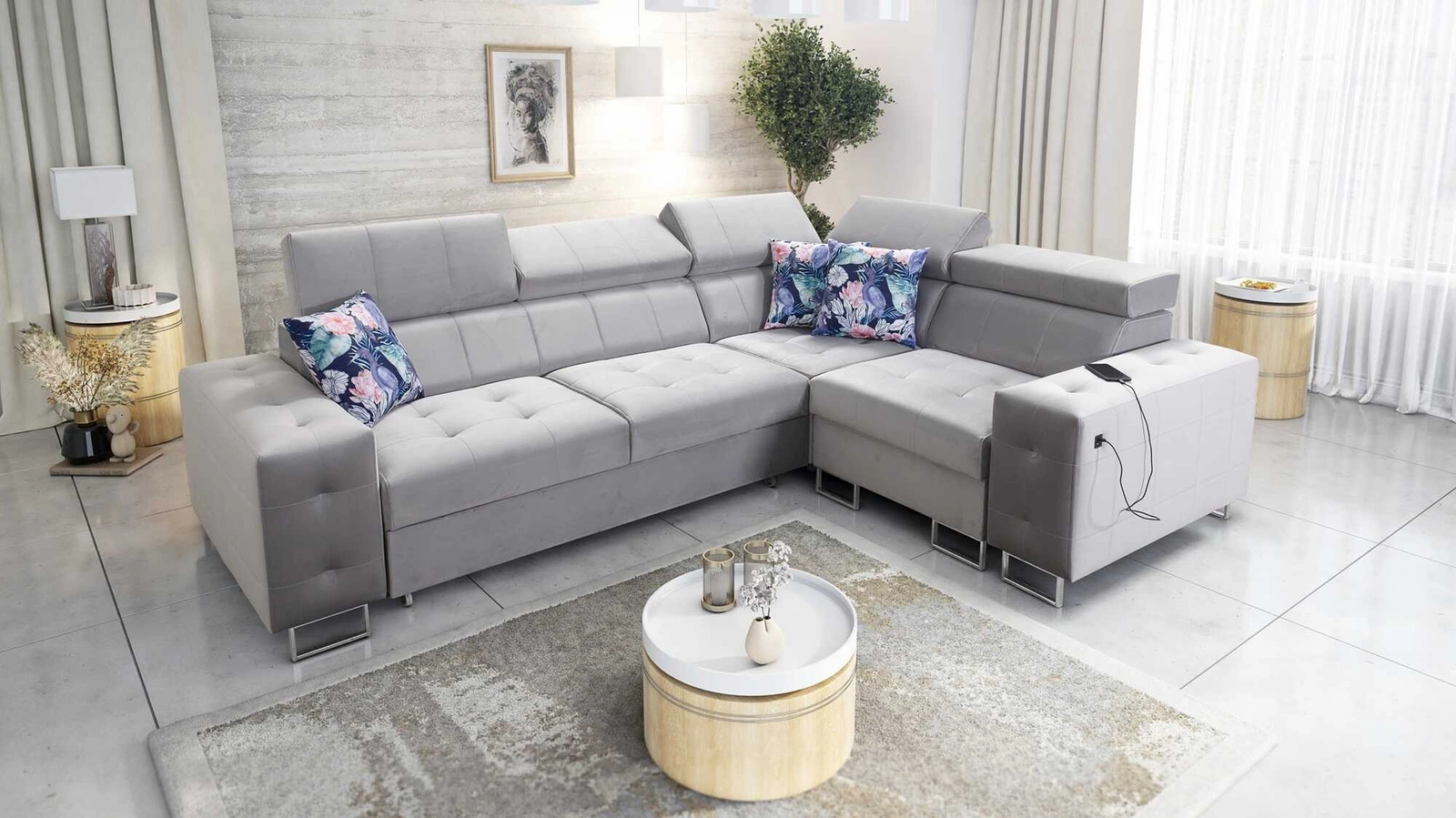 Narożnik Hampton II w kolorze szary popiel z regulowanymi zagłówkami to elegancki mebel, który świetnie dopasuje się do każdej aranżacji w Twoim domu.