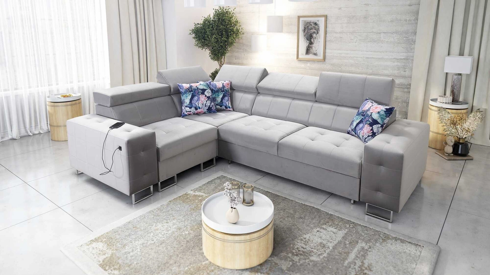 Narożnik Hampton II w kolorze szary popiel z regulowanymi zagłówkami to elegancki mebel, który świetnie dopasuje się do każdej aranżacji w Twoim domu.