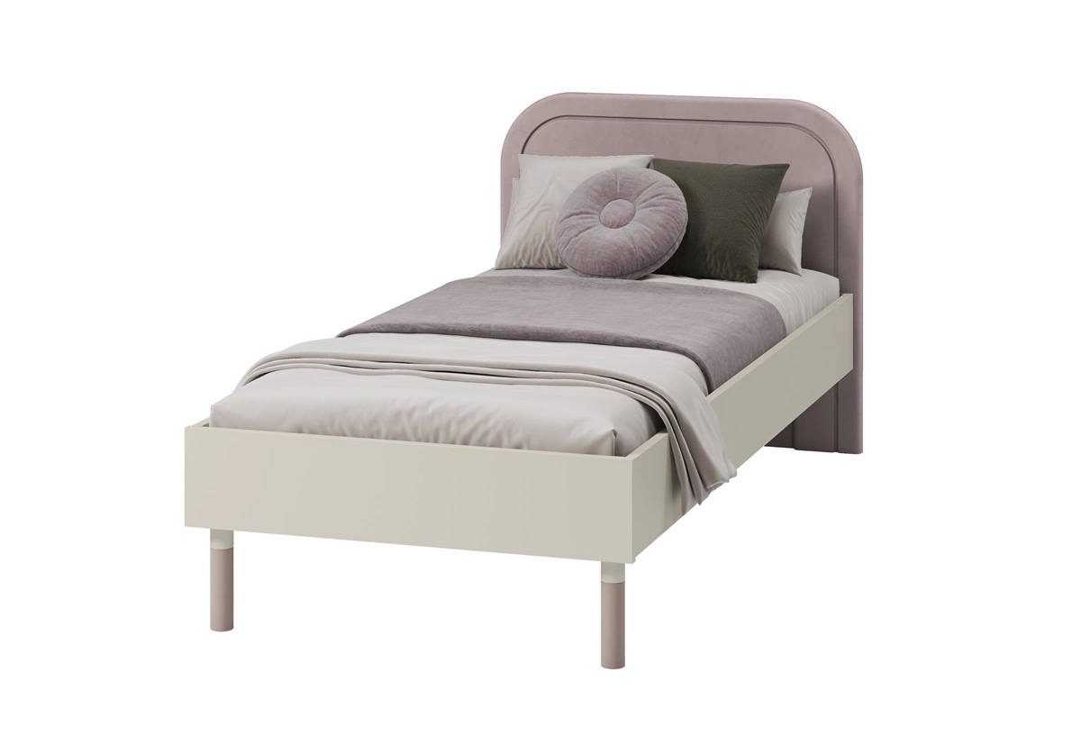 Łóżko Harmony 90x200 cm beżowy / truflowy wygodne łóżko do pokoju dziecięcego z miękkim tapicerowanym zagłówkiem
