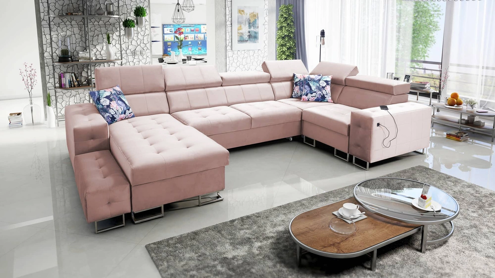 Narożnik Hampton IV w kolorze kwarcowy róż z regulowanymi zagłówkami to elegancki mebel, który świetnie dopasuje się do każdej aranżacji w Twoim domu.