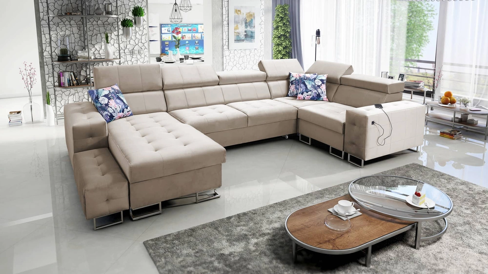 Narożnik Hampton IV w kolorze beżowym z regulowanymi zagłówkami to elegancki mebel, który świetnie dopasuje się do każdej aranżacji w Twoim domu.