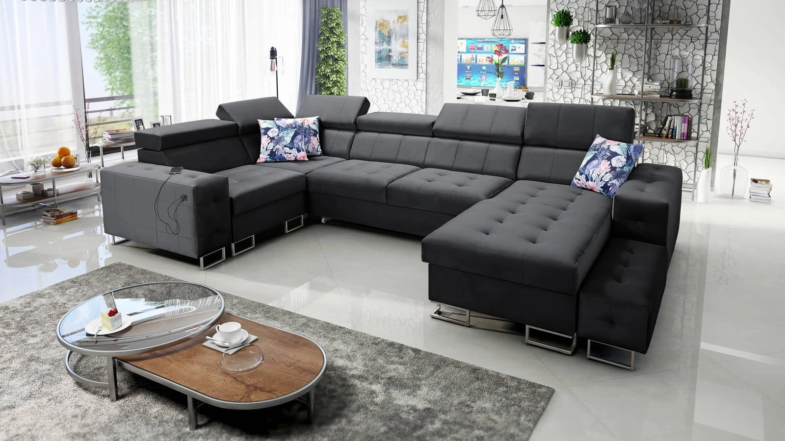 Narożnik Hampton IV w kolorze czarnym z regulowanymi zagłówkami to elegancki mebel, który świetnie dopasuje się do każdej aranżacji w Twoim domu.
