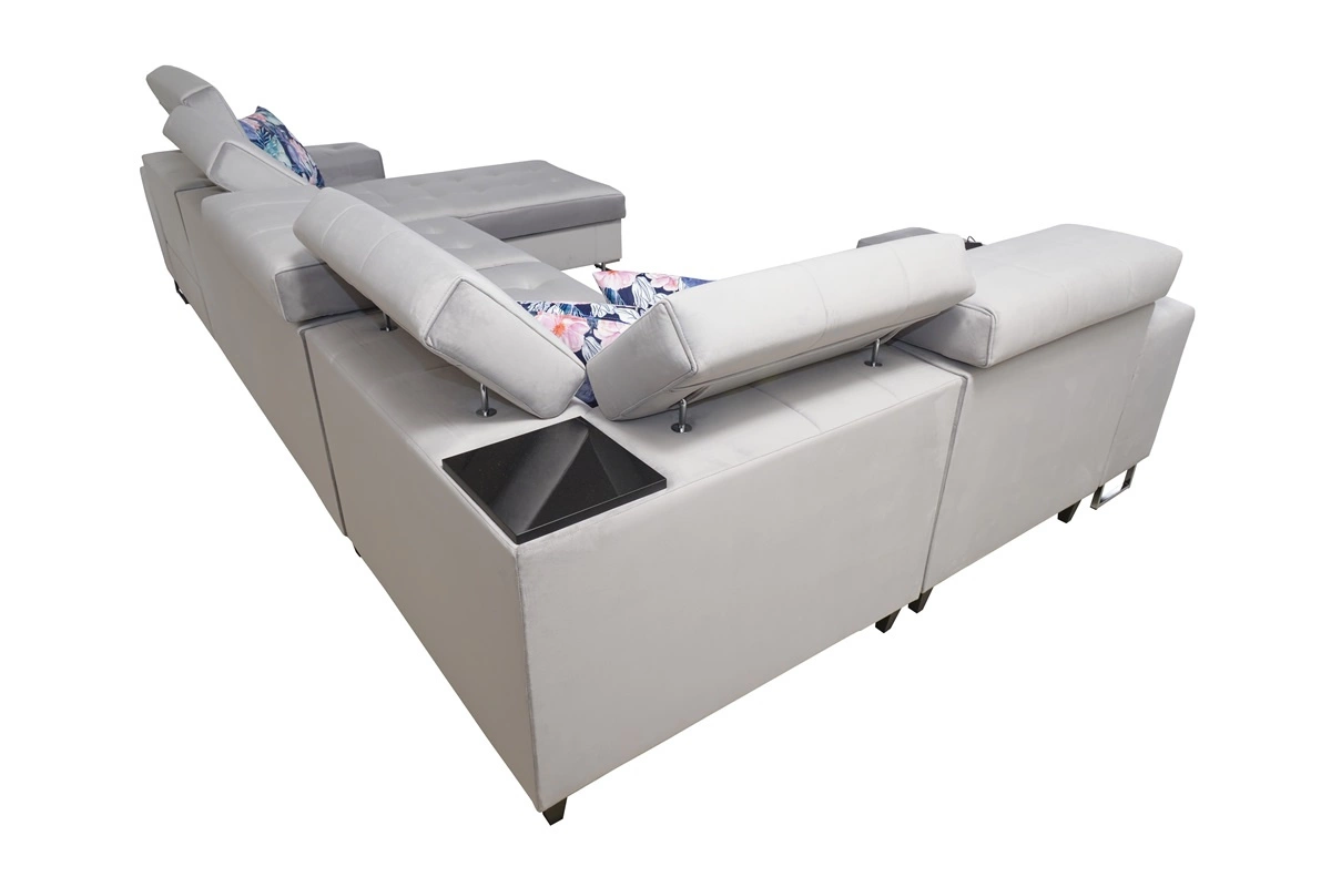 Dodatki tego mebla, które docenią wszyscy użytkownicy to pojemniki na pościel, funkcja spania, regulowane zagłówki, gniazdo ładowania USB oraz ruchoma dostawka.