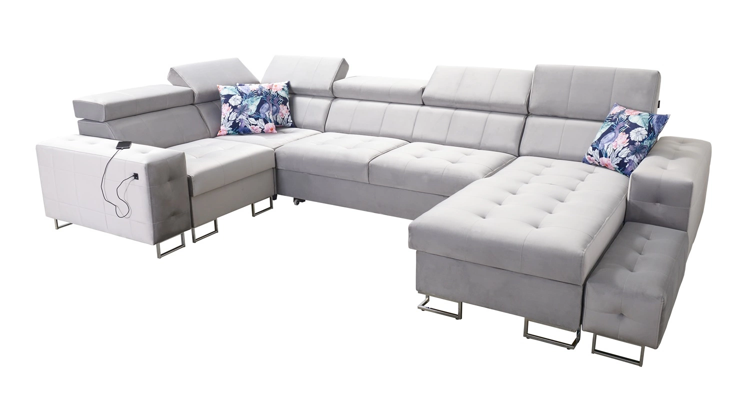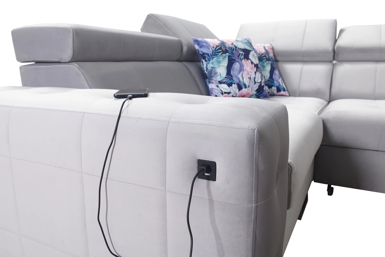 Dodatki tego mebla, które docenią wszyscy użytkownicy to pojemniki na pościel, funkcja spania, regulowane zagłówki, gniazdo ładowania USB oraz ruchoma dostawka.
