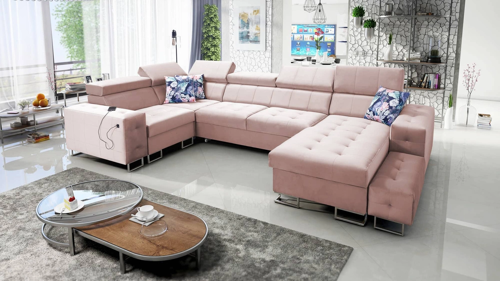 Narożnik Hampton IV w kolorze kwarcowy róż z regulowanymi zagłówkami to elegancki mebel, który świetnie dopasuje się do każdej aranżacji w Twoim domu.