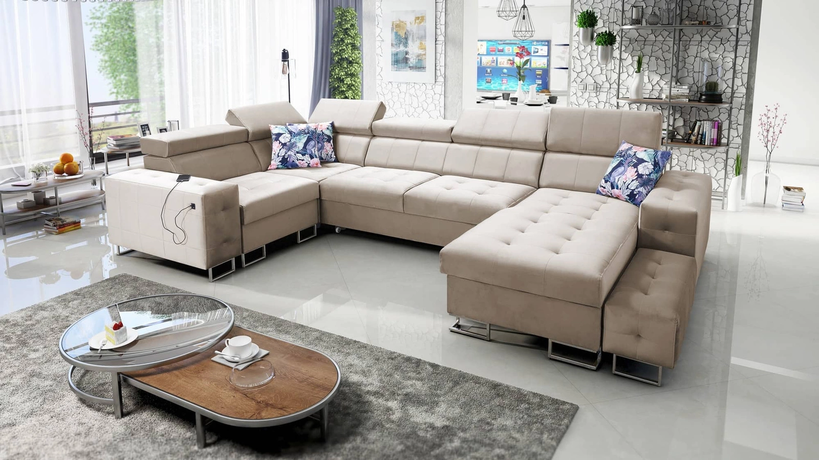 Narożnik Hampton IV w kolorze beżowym z regulowanymi zagłówkami to elegancki mebel, który świetnie dopasuje się do każdej aranżacji w Twoim domu.