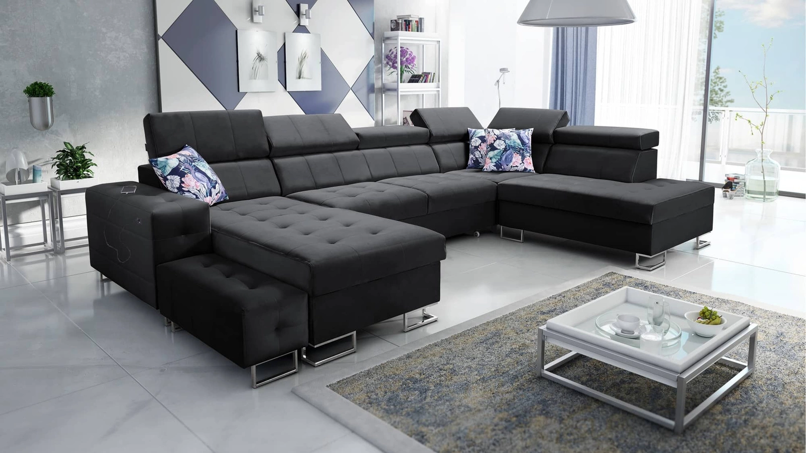 Narożnik Hampton VI w kolorze czarnym z regulowanymi zagłówkami to elegancki mebel, który świetnie dopasuje się do każdej aranżacji w Twoim domu.