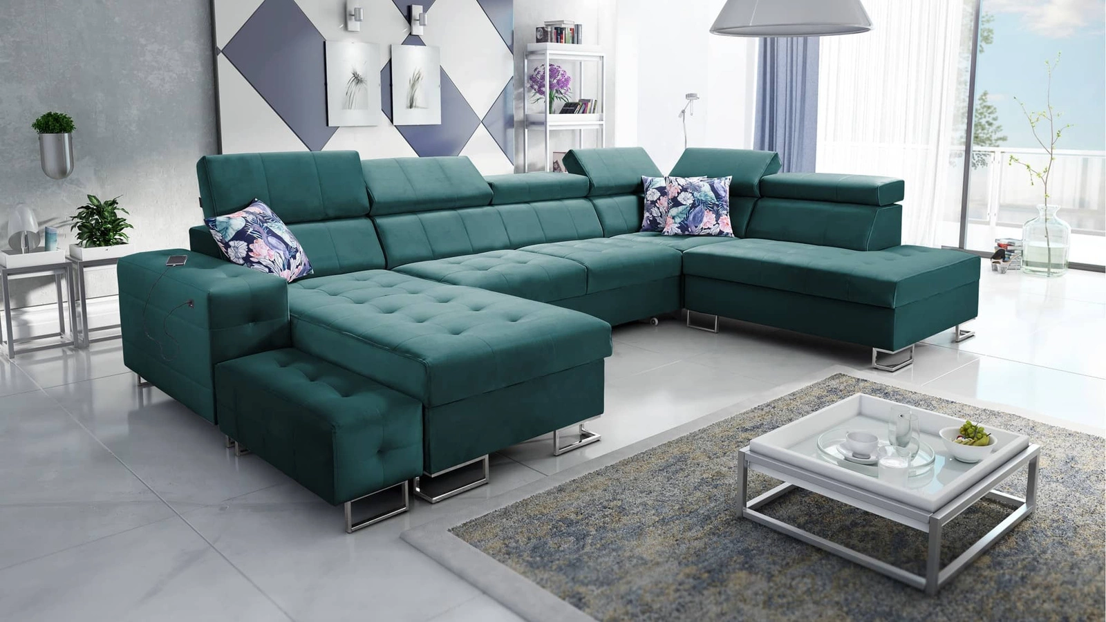 Narożnik Hampton VI w kolorze morskim z regulowanymi zagłówkami to elegancki mebel, który świetnie dopasuje się do każdej aranżacji w Twoim domu.