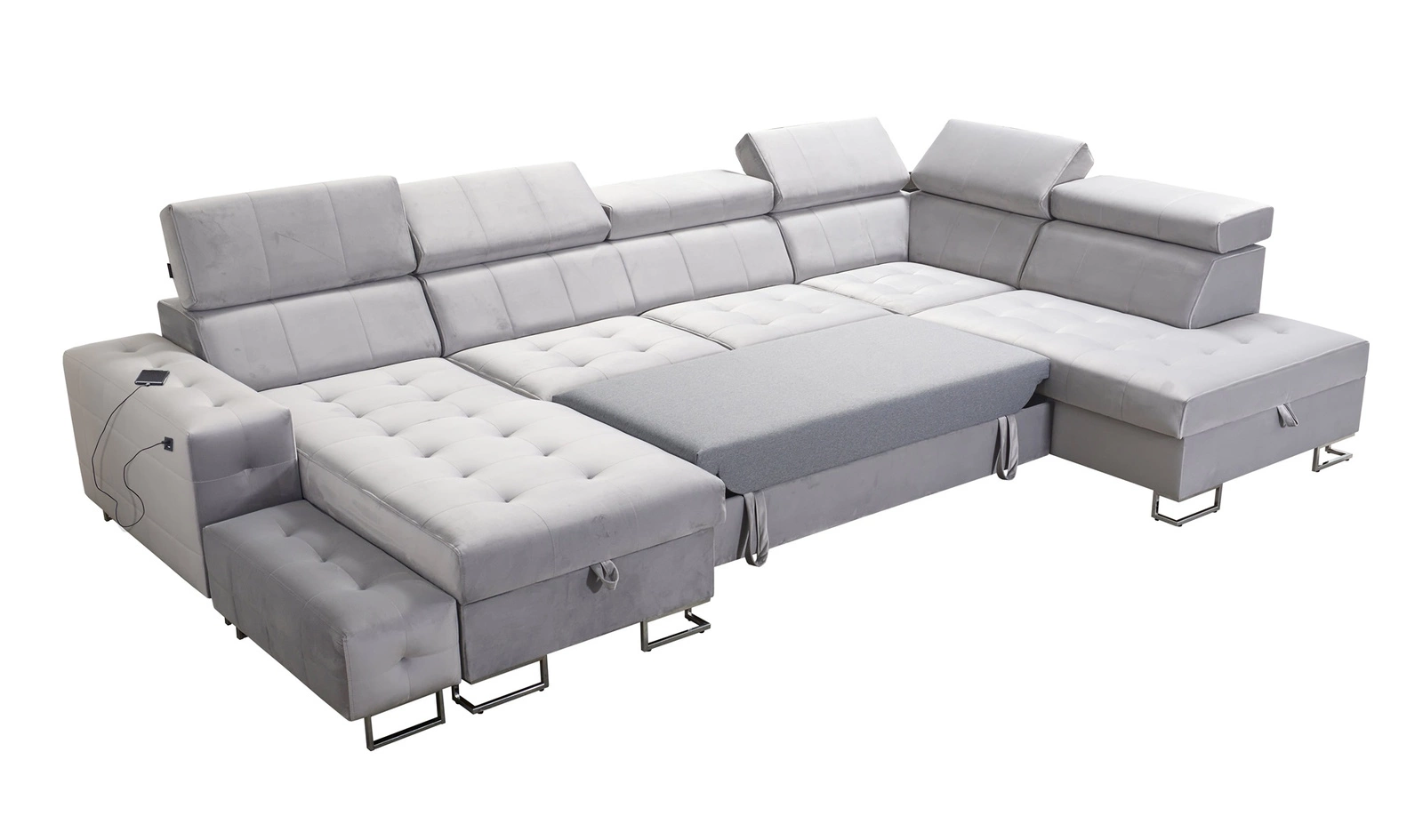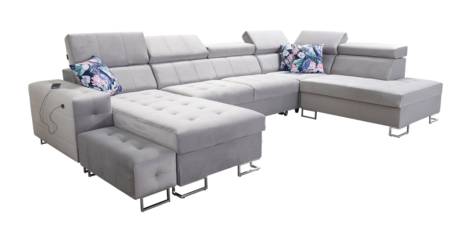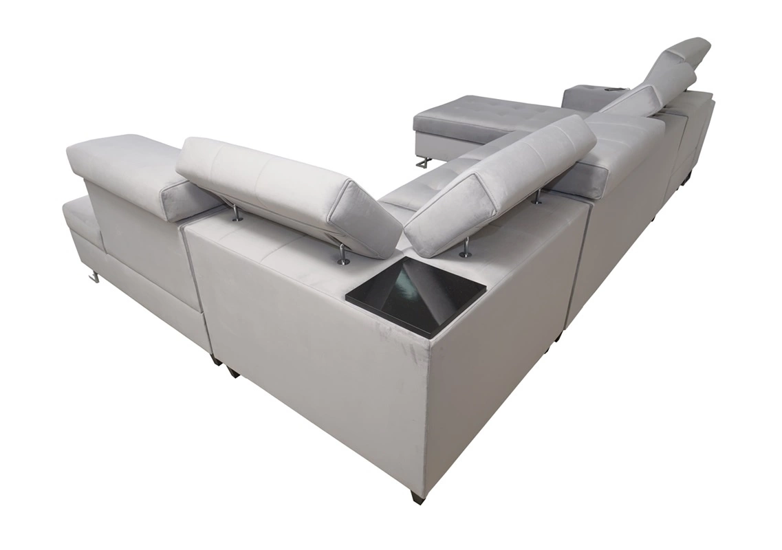 Dodatki tego mebla, które docenią wszyscy użytkownicy to pojemniki na pościel, funkcja spania, regulowane zagłówki, gniazdo ładowania USB, półka oraz ruchoma dostawka.