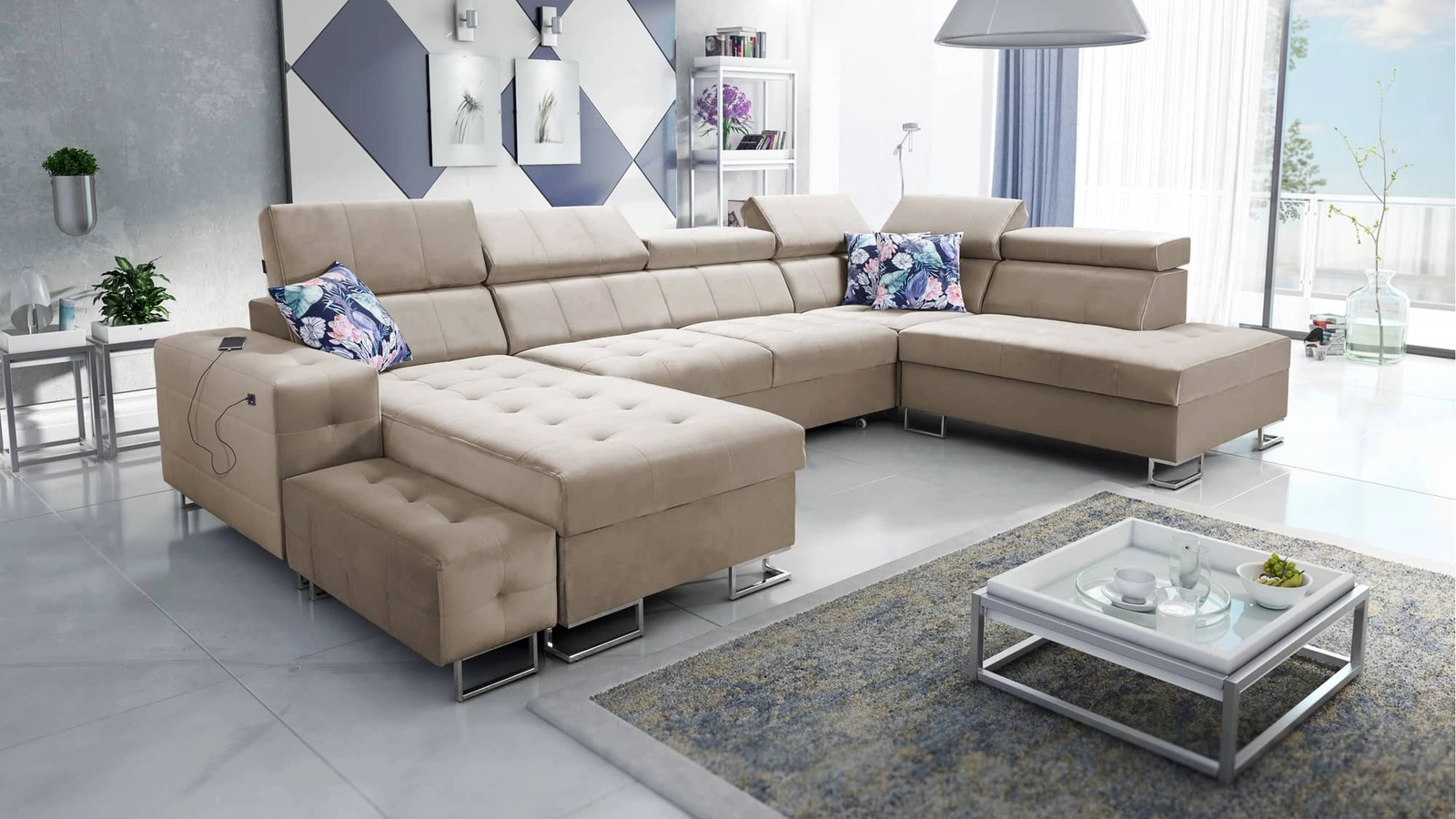 Narożnik Hampton VI w kolorze beżowym z regulowanymi zagłówkami to elegancki mebel, który świetnie dopasuje się do każdej aranżacji w Twoim domu.
