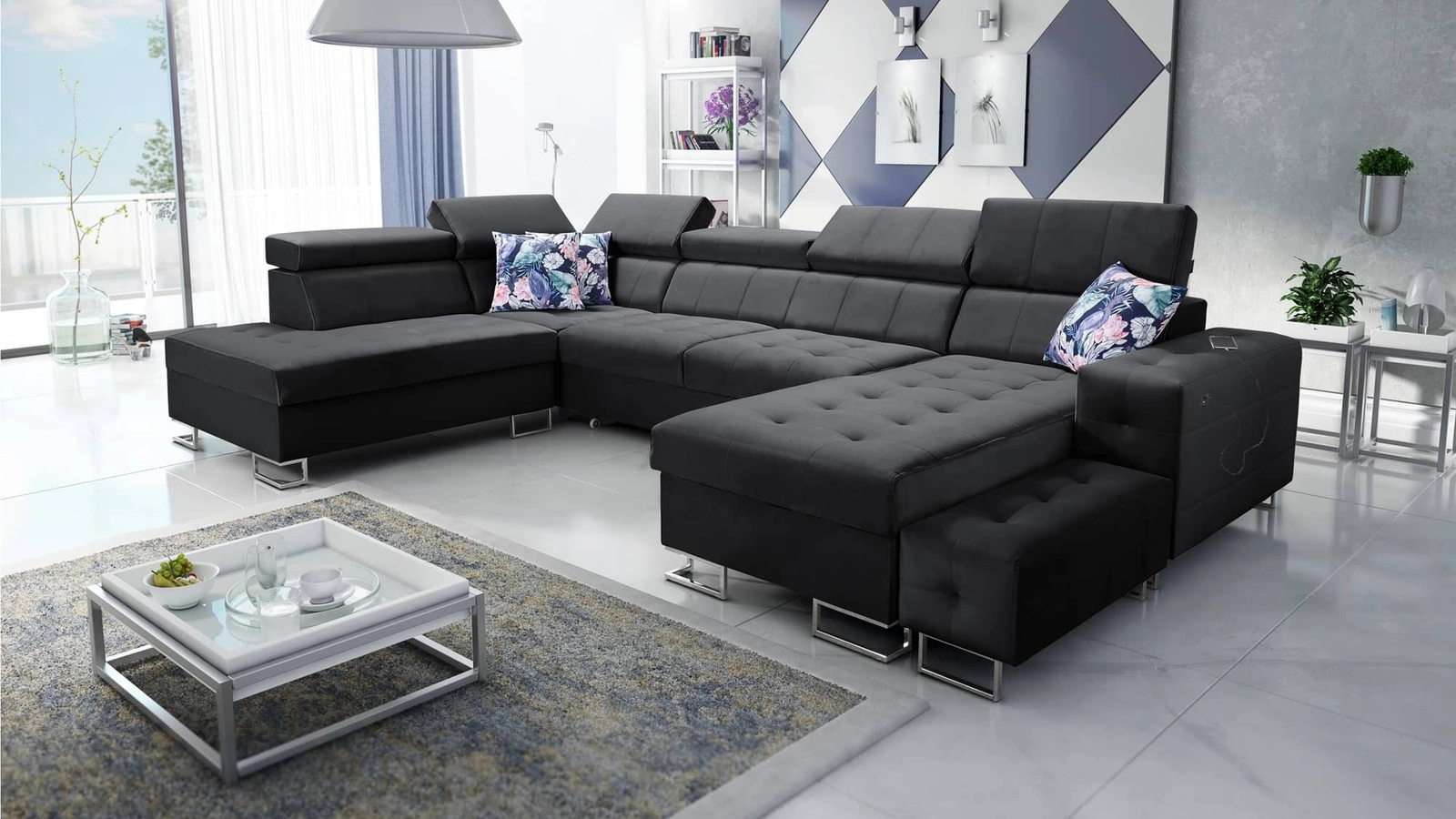 Narożnik Hampton VI w kolorze czarnym z regulowanymi zagłówkami to elegancki mebel, który świetnie dopasuje się do każdej aranżacji w Twoim domu.