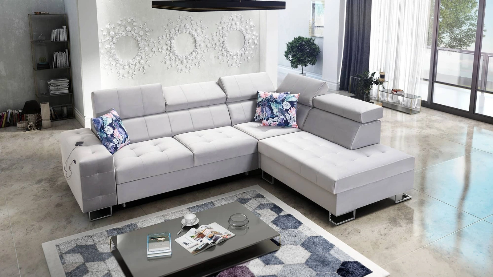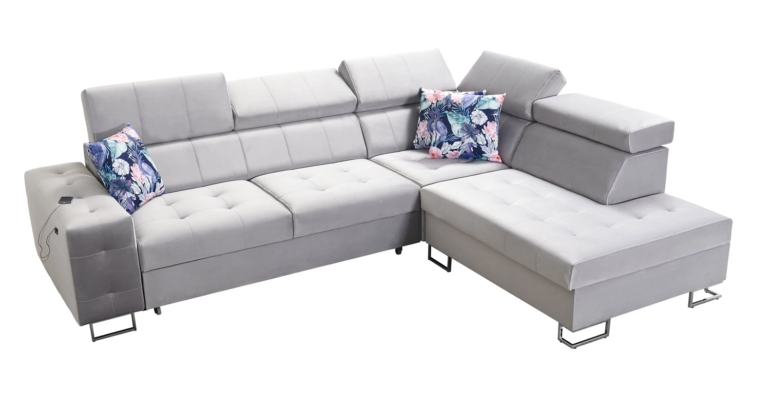 Narożnik Hampton VII w kolorze szary popiel z regulowanymi zagłówkami to elegancki mebel, który świetnie dopasuje się do każdej aranżacji w Twoim domu.