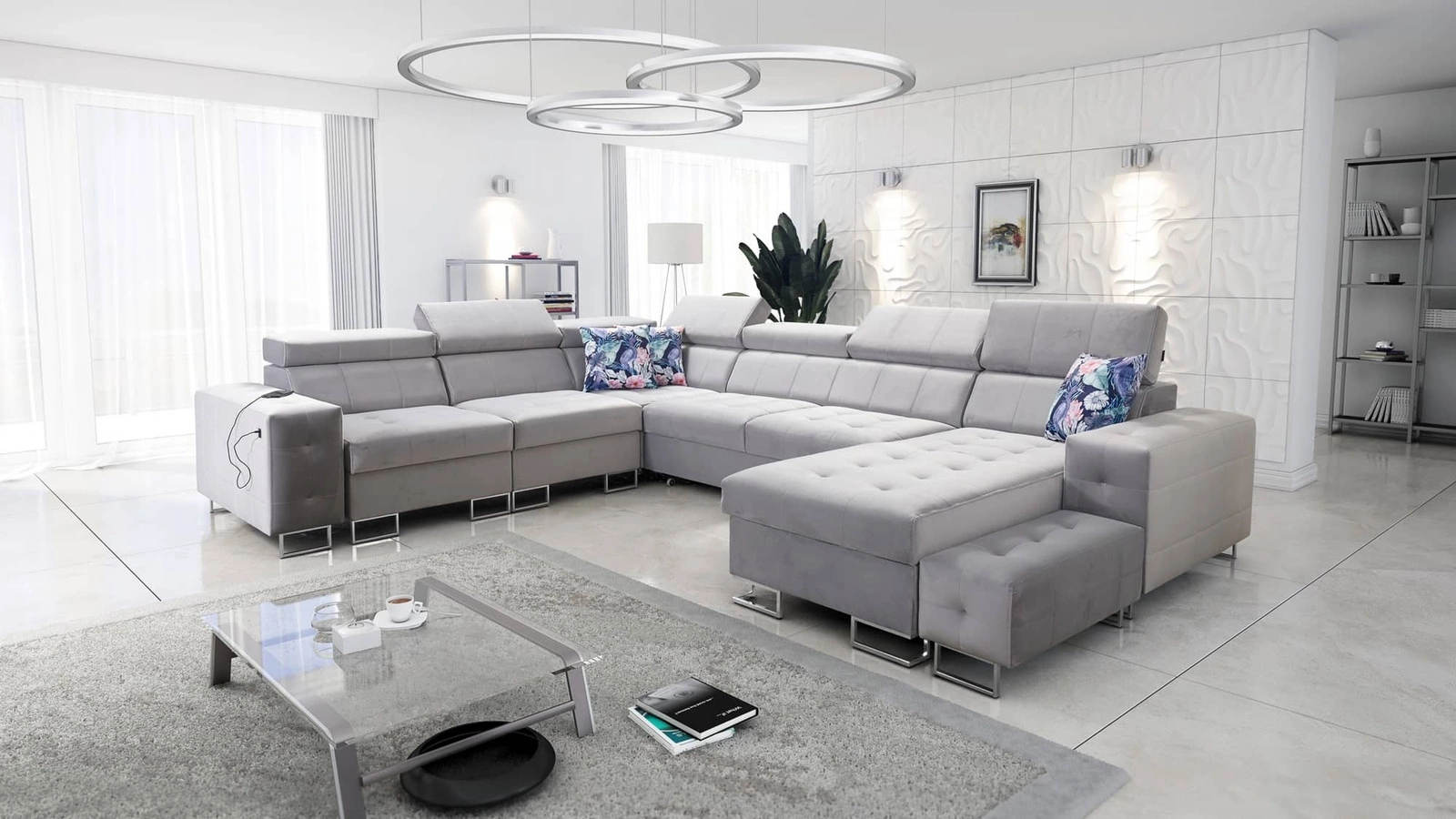 Narożnik Hampton VIII w kolorze szary popiel z regulowanymi zagłówkami to elegancki mebel, który świetnie dopasuje się do każdej aranżacji w Twoim domu.