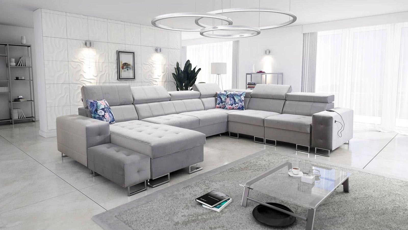 Narożnik Hampton VIII w kolorze szary popiel z regulowanymi zagłówkami to elegancki mebel, który świetnie dopasuje się do każdej aranżacji w Twoim domu.