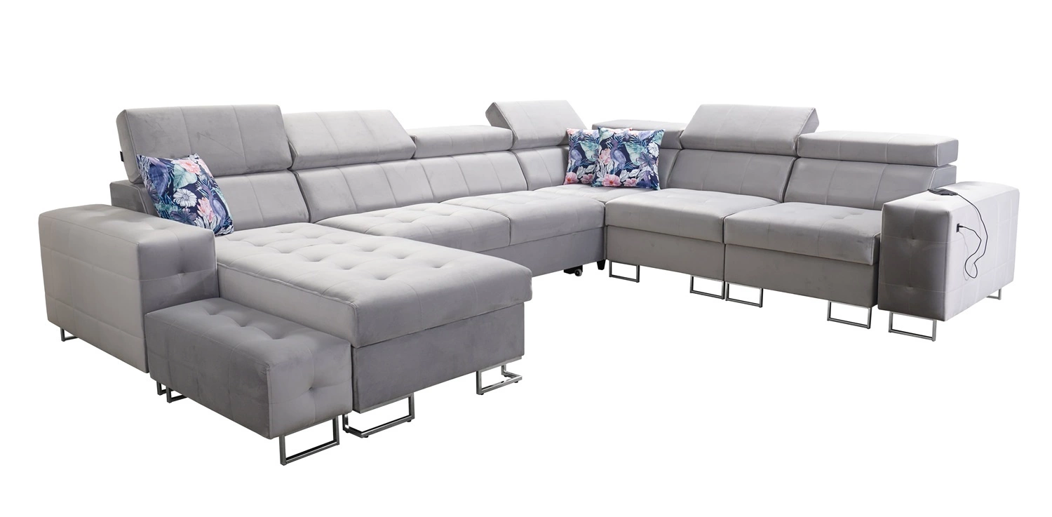 Dodatki tego mebla, które docenią wszyscy użytkownicy to pojemniki na pościel, funkcja spania, regulowane zagłówki, gniazdo ładowania USB oraz ruchoma dostawka.