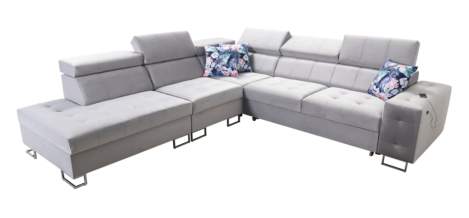 Szczegóły nowoczesnego narożnika z funkcją spania Hampton IX
