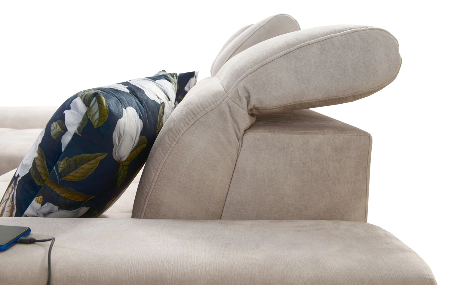 Narożnik Buffalo VIII w kolorze ciemny beżowy z regulowanymi zagłówkami to ciekawie prezentujący się mebel o eleganckim wykończeniu.
