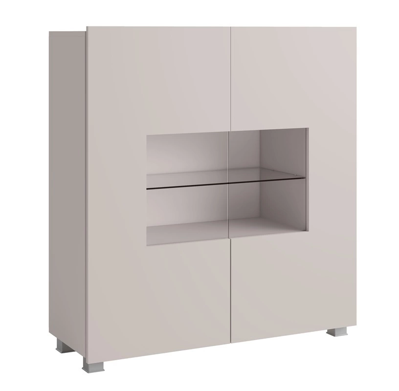 Komoda z przeszkleniem Apulia 100 cm beżowa minimalistyczny design stylowa komoda do salonu prosta bryła wpisująca się w każde wnętrze